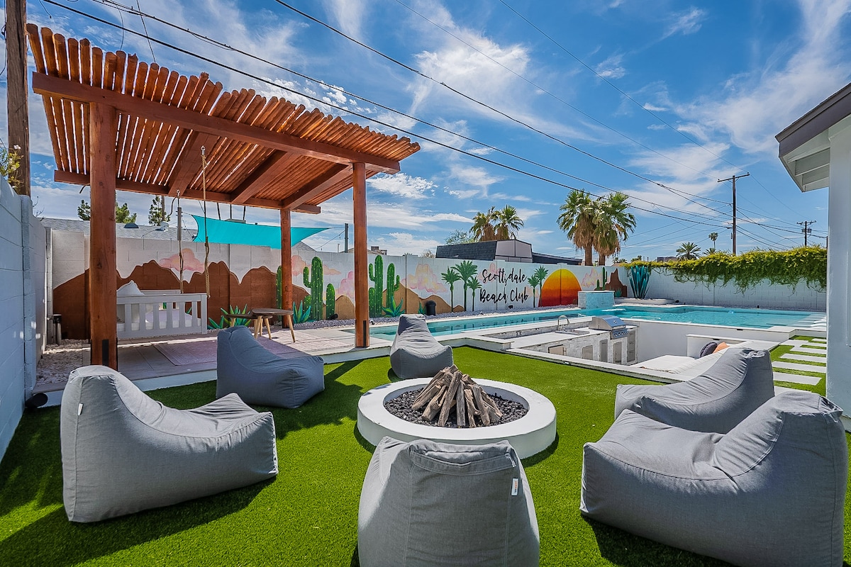 Travitude présente ! Alerte de nouvelle annonce ! Permis STR n° 2035587 Bienvenue au Scottsdale Island Club ! Notre toute nouvelle location de vacances de luxe. Cette maison unique en son genre est entièrement équipée et prête pour votre prochain voyage à Scottsdale ! Cette maison a été entièrement rénovée de la tête aux pieds avec une toute nouvelle piscine avec bar et un barbecue et un foyer au gaz enterrés. À quelques pas du quartier des divertissements, cette maison de 5 chambres/3 salles de bain est située au centre de Scottsdale, à proximité des restaurants et de la vie nocturne les plus prisés.