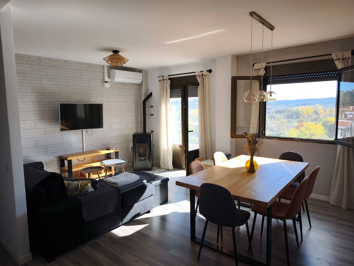 Un havre de paix à Monte Hoyuela. Déconnectez-vous devant notre cheminée à bois en hiver ou profitez de la piscine et des terrasses en été. 🌲 Idéal pour le télétravail : bureau avec connexion fibre 600 Mb et vue sur la montagne. 🏠 Maison mitoyenne complète : 3 chambres, barbecue, paellero et parking facile. Parfait pour la randonnée, la détente et les familles. Nous fournissons des draps et des serviettes de qualité. Votre escapade à la campagne à deux pas de Valence !
