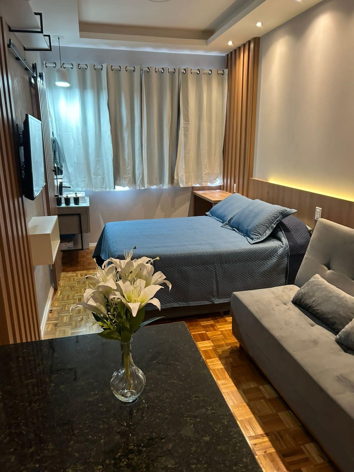 Appartement avec chambre et salon, avec cuisine américaine, propre, très bien situé, PAS DE PARKING NOUS NE LOUONS PAS POUR RECEVOIR DES VISITES Il est sur l'avenue principale de la ville, il y a beaucoup de places dans la rue en face de l'immeuble, dans le quartier le plus touristique et calme de Teresópolis. 30 m de Viva Italia 40 m de l'église de Sto. Antonio 200 m de la foire 450 m de la Fonte Judite 700 m de la Villa Sant Gallen 700 m de l'UNIFESO À 1,0 km du parc national Il peut y avoir un bruit de hotte du restaurant qui se trouve dans le bâtiment