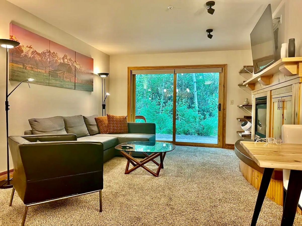 Amazing Aspens Condo à proximité de Jackson Hole Mountain Resort, à côté des magasins et des restaurants. Sur la ligne de bus START avec accès facile à Jackson Hole Mountain Resort (5 miles) et à Town Square (8 miles). Excellent emplacement à côté de la piste cyclable sur Moose Wilson Road et de la ville. Emplacement calme dans un quartier boisé à l'écart de l'agitation de la ville, mais suffisamment proche de la place de la ville pour tous vos achats, repas et visites touristiques. Il est courant de voir des élans et des cerfs dans le jardin de derrière !