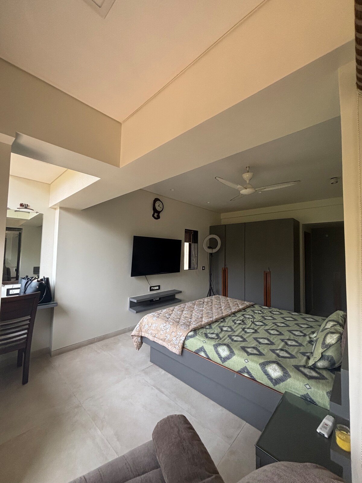 Bienvenue dans votre retraite d'inspiration Van Gogh ! Idéalement situé près de l'aéroport et du lac Powai, cet élégant appartement 1 BHK offre confort et commodité. Profitez de deux téléviseurs, deux salles de bain, un coin repas, des meubles IKEA, un éclairage spectaculaire, une connexion Wi-Fi gratuite, Amazon Prime, un système de musique Caravaan, une climatisation et des ventilateurs de plafond. Détendez-vous sur le canapé lit ou le lit moelleux dans la chambre confortable. Réveillez-vous avec une vue imprenable sur la colline et plongez dans un monde d'art et de tranquillité. Réservez dès maintenant !