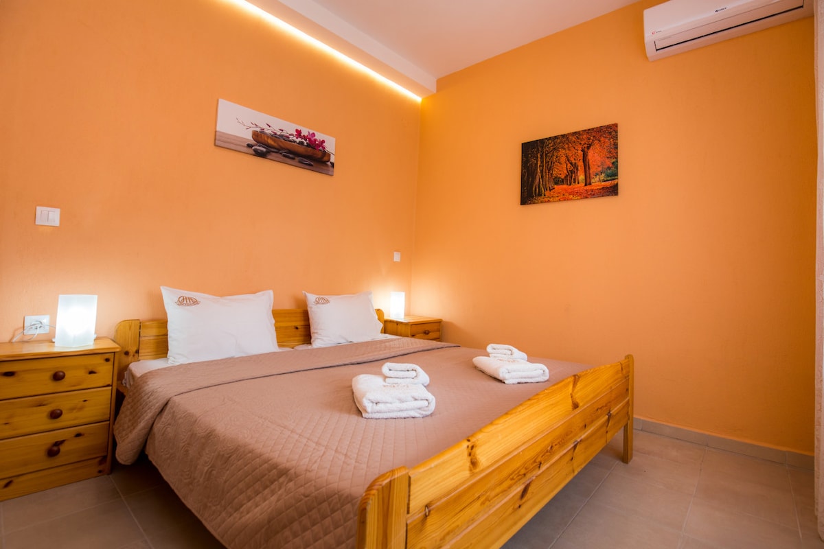 Appartement Nereus Au centre d'une ferme oléicole se trouve un appartement accueillant, propre et beau, l'Appartement Nereus, qui peut accueillir et servir jusqu'à sept (6) personnes. Il comprend trois (3) grandes chambres avec lits doubles, mobilier moderne et placards spacieux. Pour nos petits amis il y a la possibilité d'ajouter un lit simple ou un lit d'enfant sur demande. 12,5 km du port de Thassos Coordonnées 40.774353, 24.607763 We J'espère que vous apprécierez votre séjour.