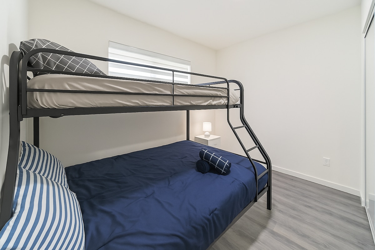 Vous séjournerez dans une suite tranquille avec une entrée privée à l'arrière de notre maison. Il y a un mur commun avec une porte sécurisée avec des serrures des deux côtés pour une intimité totale. La suite 1 chambre 1 salle de bain dispose d'une cuisine avec friteuse à air/four grille-pain, poêle électrique, 2 plaques de cuisson, micro-ondes, réfrigérateur et lave-vaisselle. Le canapé convertible pleine grandeur permet de dormir à deux. Ce canapé convertible dans le séjour offre un couchage supplémentaire. Nous pouvons également fournir un lit double gonflable.