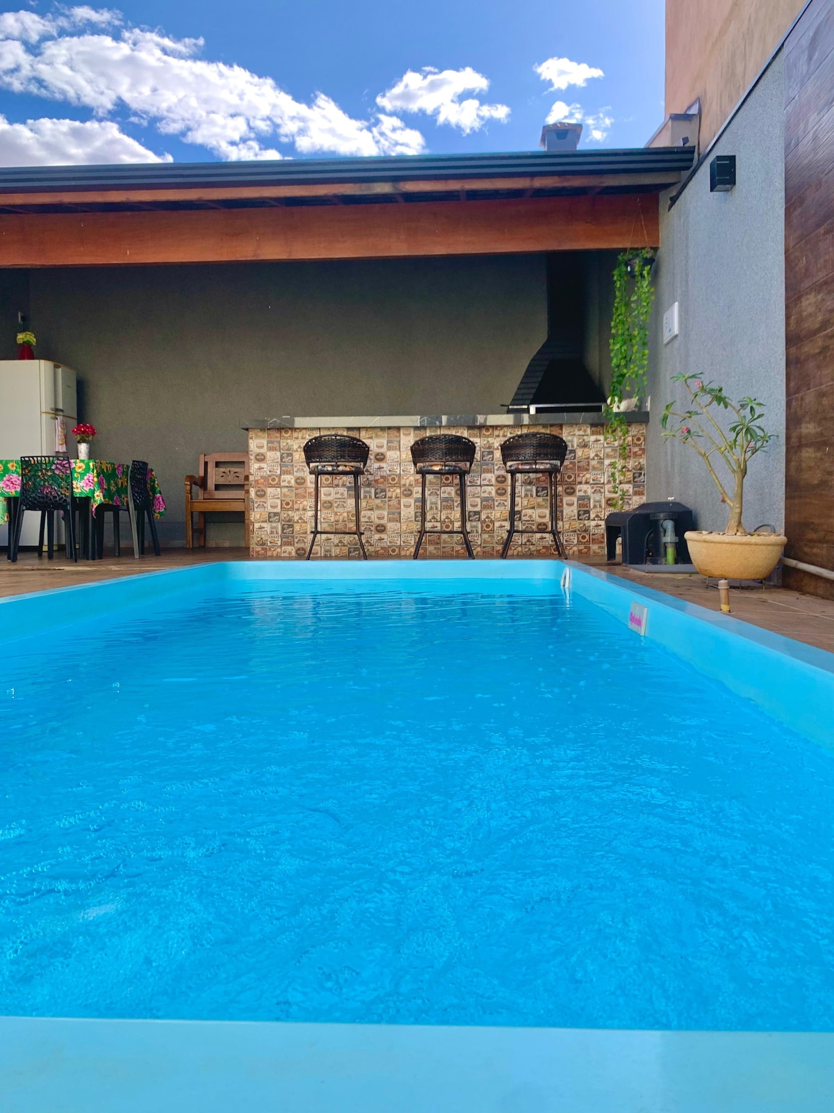Maison très confortable et moderne, chambre avec air conditionné, wi-fi, TV plasma, cuisine complète, grand espace de loisirs, parking, piscine 6x3x1,40 et le principal tout fermé pour votre vie privée et celle de votre famille, avec clôture électrique et portail électronique. Nous n'acceptons pas les animaux de compagnie. Nous ne fournissons pas de linge de lit et de serviettes. Les oreillers sont dans la maison. Nous ne louons pas et n'acceptons pas les fêtes, nous ne louons qu'à la famille. Propriétaires : Gleidson Souza et Luciara Veber Ducatti
