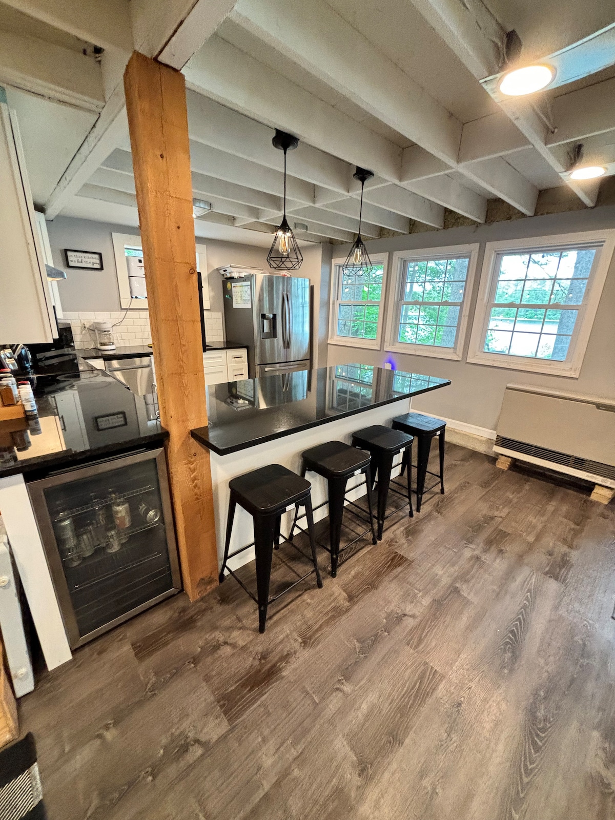 Idéalement situé au cœur du centre-ville de Bridgton, le Tap House Loft est prêt pour vous, vos amis et votre famille ! Marchez jusqu'à la rue principale animée, Pondicherry Park, le Magic Lantern Theater, Highland Lake et tous les magasins, galeries et restaurants du centre-ville... ou détendez-vous simplement dans la tranquillité de notre entrepôt historique récemment restauré. Situé au-dessus du Sundown Lounge, cet espace de 900 pieds carrés offre une grande suite parentale avec des portes françaises menant à une terrasse et un jacuzzi.