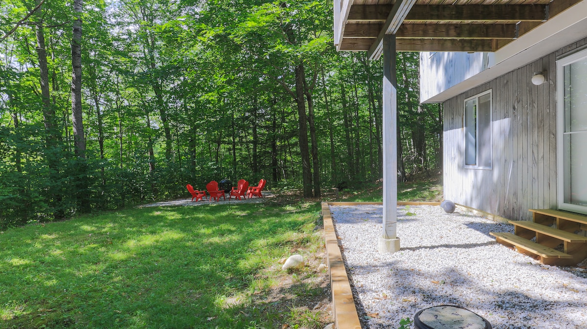 Bord de mer avec kayaks, table de billard, pergola, foyer