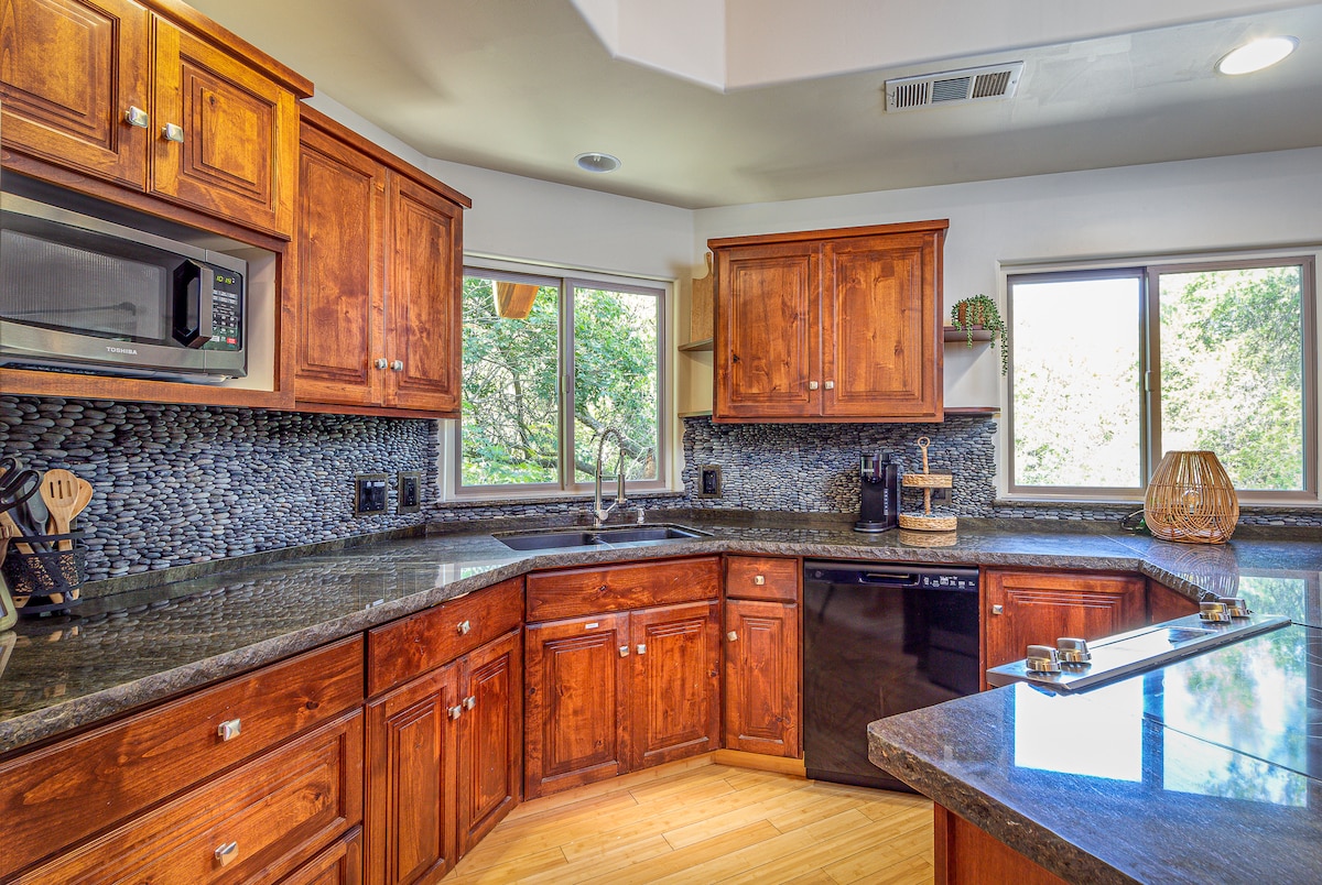 À 10 min de Sequoia | Foyer extérieur | Cuisine moderne | Environnement boisé
