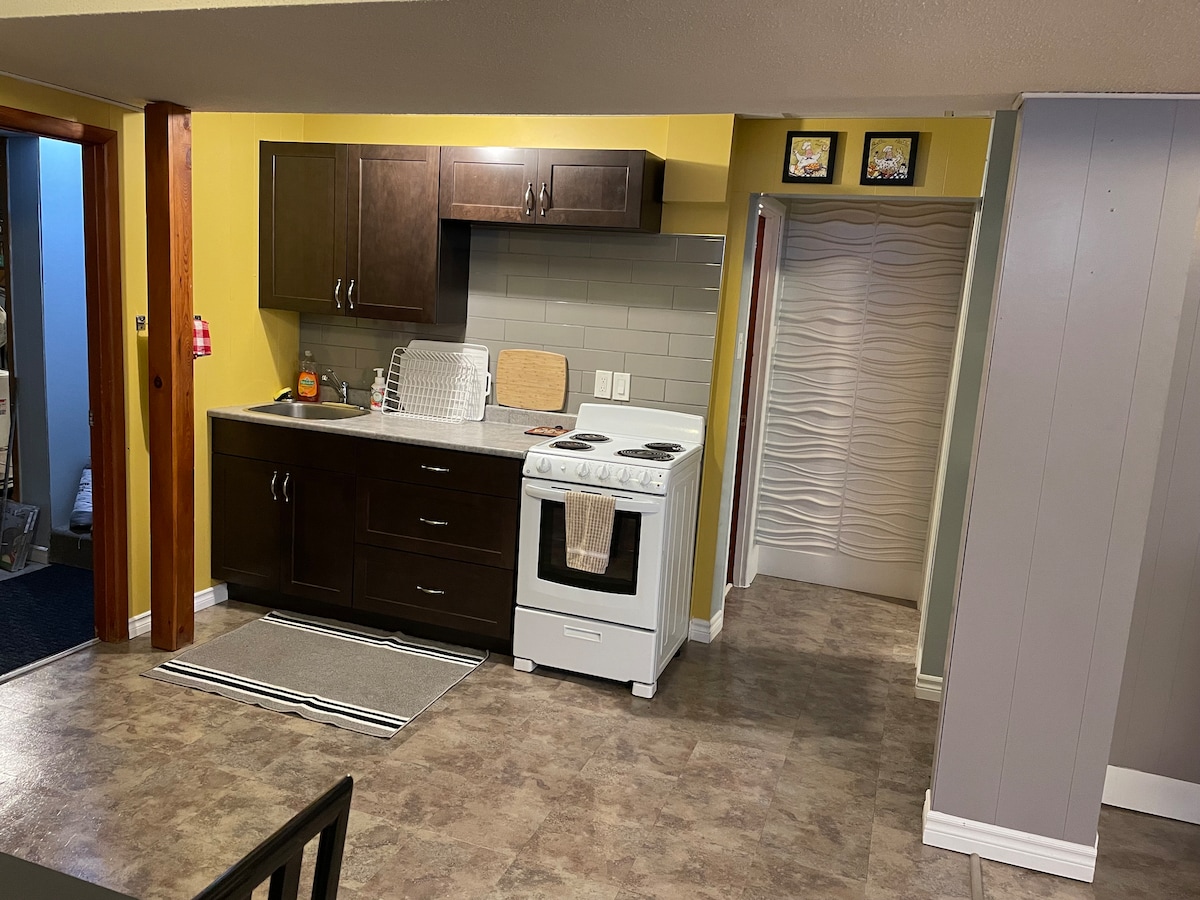 Rénové à partir des montants et conçu pour votre séjour. Idéalement situé dans un beau quartier résidentiel, à quelques minutes à pied ou en voiture du centre-ville de Port Arthur et de l'Université Lakehead, de l'hôpital et plus encore. Beaucoup de lumière, une chambre confortable, une toute nouvelle cuisine et une salle de bain moderne trois pièces. Profitez du matelas Endy queen size, regardez Crave sur le téléviseur 43 pouces et préparez-vous des friandises (ou un repas complet) dans la toute nouvelle cuisine entièrement équipée. Wi-Fi gratuit.