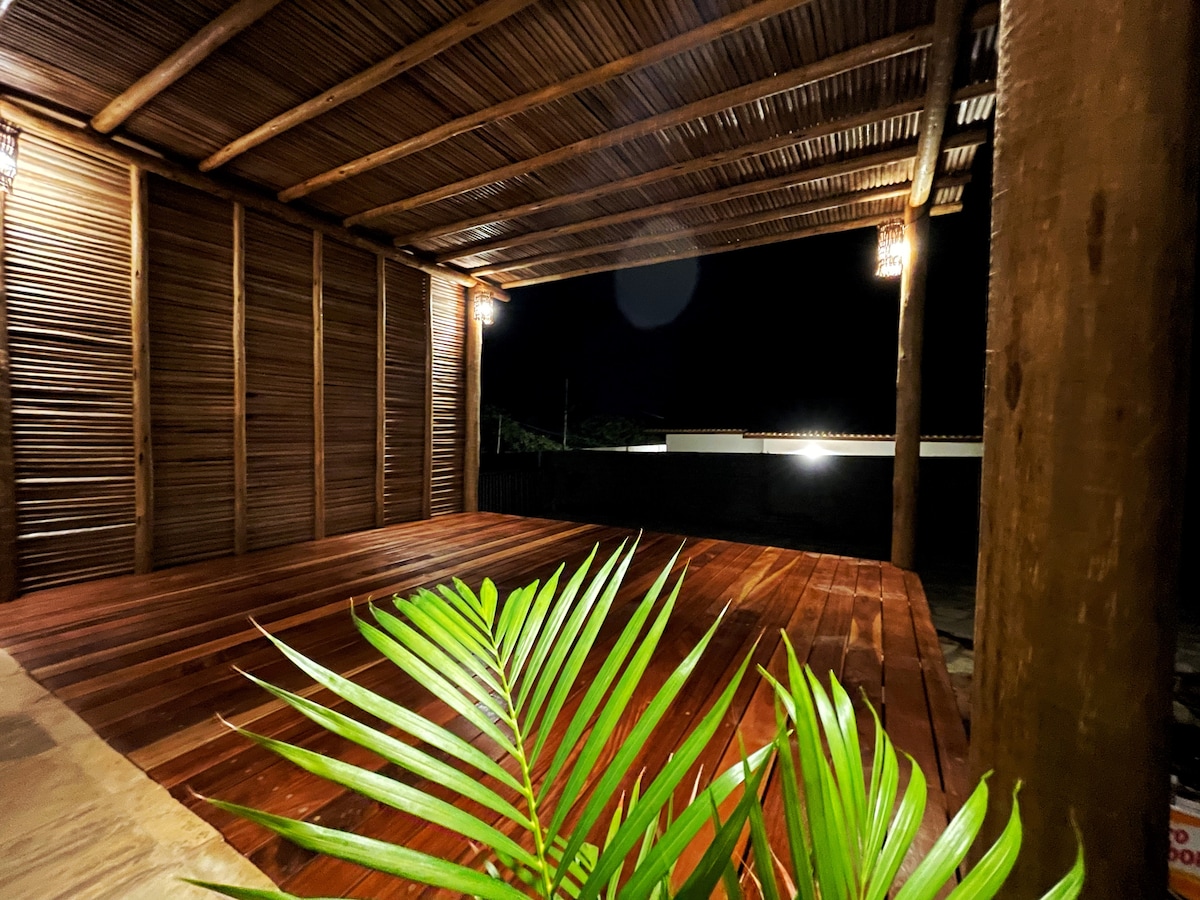 Détendez-vous dans cet endroit unique et paisible. Situé à 5 min de la plage de Redonda, à Icapuí/CE, le Chalé Azul est situé dans une zone haute et privilégiée qui offre une vue panoramique à 180° sur la plage. Le Chalé Azul offre la tranquillité, un endroit pour méditer et se reposer avec tout le confort et les commodités: cuisine complète, douche chaude, toilettes, lit queen size, wi-fi haut débit, bureau, hamacs et véranda. Il peut accueillir jusqu'à trois personnes (deux dans le lit et une dans le hamac interne).