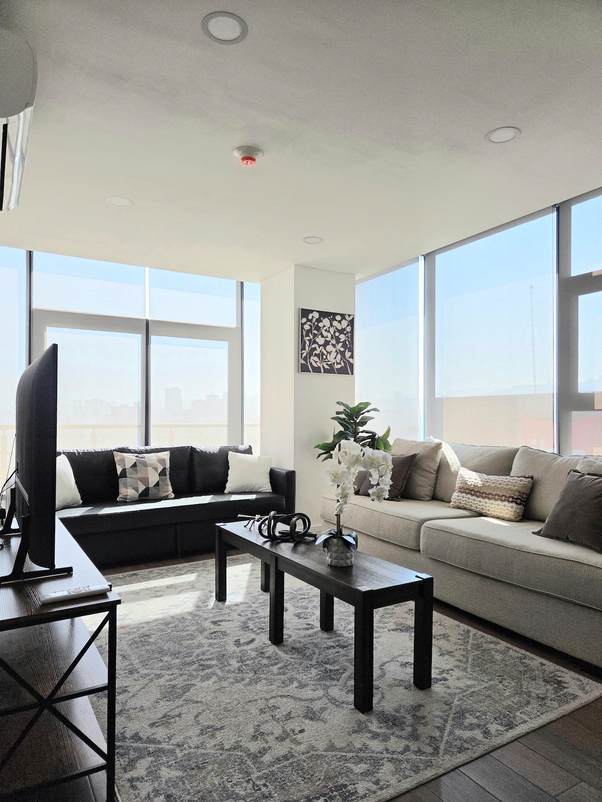 Luxe, commodité et style ! Entouré de bâtiments contemporains, plongez dans le nouveau visage de la ville. 5 min à proximité de la frontière 🇺🇸 et des hôpitaux 🏥 À 3 min du consulat des États-Unis À 15 min de l'aéroport ✈️ Remarques : Canapé-lit dans un studio et non dans un salon * Frais de 3e voyageur *Les bâtiments en construction à proximité peuvent causer de la poussière et du bruit. *Certaines zones peuvent faire l'objet d'un entretien et nous ne serions pas en mesure de les rembourser. *Interdiction de fumer/vapoter : frais de 250 $ *LES NOMS DE TOUS LES VOYAGEURS AVANT L'ARRIVÉE DOIVENT ÊTRE FOURNIS*