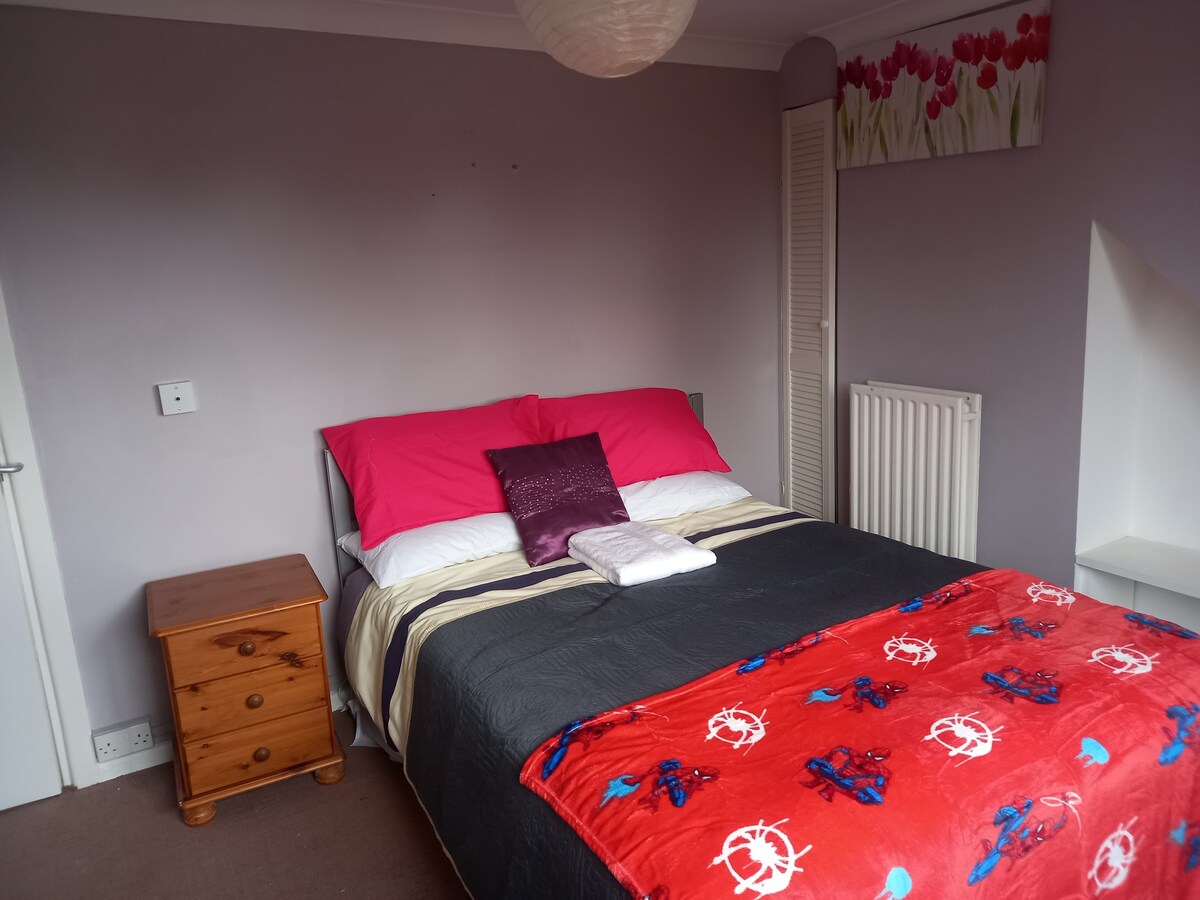 Accès privé, porte d'entrée menant au salon et portes-fenêtres au jardin. Entièrement meublé, canapé-lit, bureau, théière, cafetière, micro-ondes, fer à repasser et Wi-Fi gratuit. À l'étage, salle d'eau attenante, lit double, commode, armoire et télévision. Une porte de la cuisine de la maison principale relie l'annexe et reste verrouillée. Nous respectons la vie privée de nos voyageurs, mais sommes disponibles si nécessaire. À quelques pas de la ville/des gares et des supermarchés, des restaurants et des pubs situés à proximité.