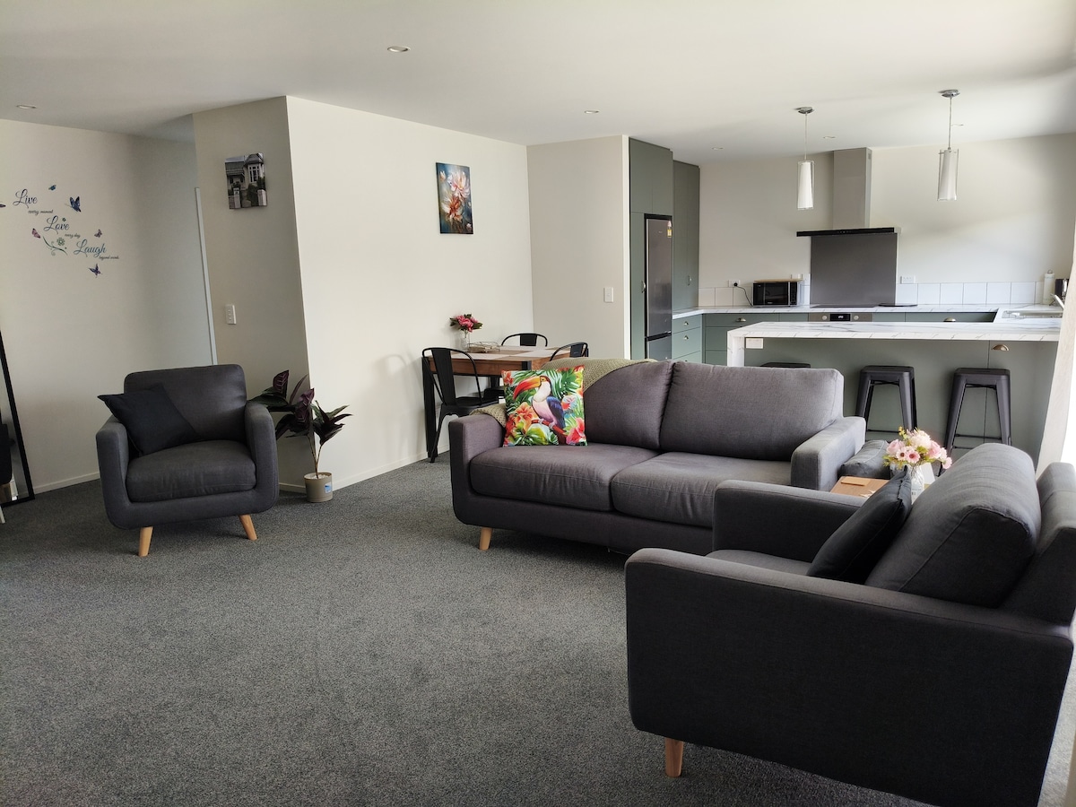 Cet appartement est situé à 5 minutes de la route panoramique intérieure 72 et à moins de 20 minutes du village agricole convivial de Geraldine. Utilisez l'appartement comme une rampe de lancement pour des activités locales à Peel Forest (randonnées à cheval et promenades dans la brousse), au lac Tekapo (patinage sur glace, glissade sur neige, spa de jour et piscines chaudes), au mont Cook (belles promenades panoramiques et promenades en hélicoptère), ou tout simplement comme un endroit pour se détendre et échapper à l'agitation de la ville. Nous sommes une ferme en activité avec du bétail, quelques poulets et 2 chiens.