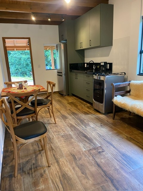 Imaginez un chalet familial, réservé et super confortable au milieu de la nature, entouré de pâturages, d'hortensias, baigné de ruisseaux, d'un ciel incroyable et d'une cascade cristalline. Nous nous efforçons de vous offrir une expérience confortable et romantique avec le climat de montagne, la paix et la chaleur d'un poêle à bois et d'une baignoire chauffée. Le chalet est super équipé dans sa cuisine, barbecue intérieur dans le deck couvert, poêle à bois et espace extérieur avec foyer, baignoire aq. Nous fournissons du bois de chauffage, une connexion Wi-Fi Starlink et une télévision intelligente