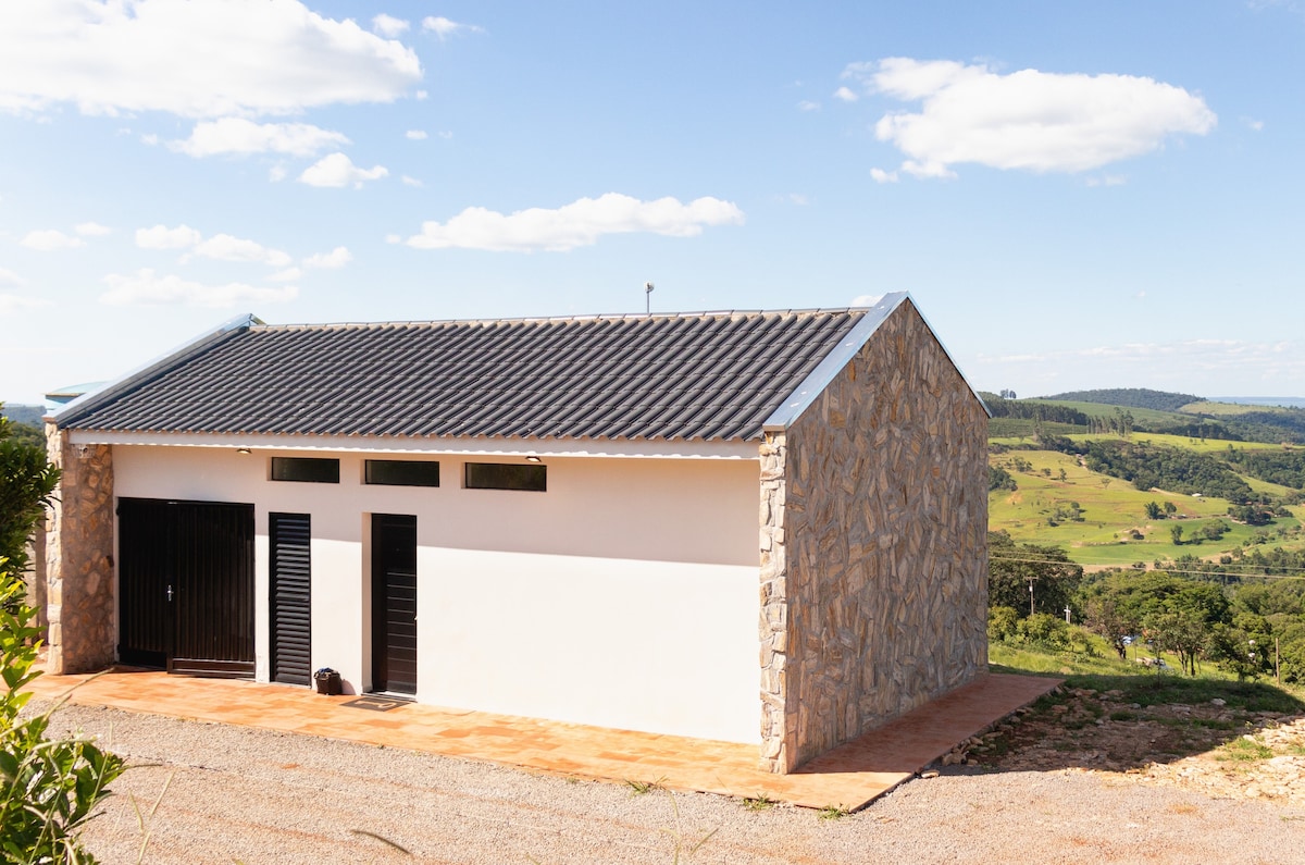 Curta uma experiência neste lugar único aconchegante com piscina AQUECIDA com hidro, lareira externa , caíaque disponível,apenas 200 mt da represa onde é ideal para nadar pescar e completar um lindo por do sol a 3km do centro cidade wi-fi rápido 2 quartos com ar cond central 1 com cama Queen c massagem,sacada c vista para as montanhas e represa,área gourmet sala tv smart 50 com streaming cozinha completa, Um lugar para colecionar memórias e recarregar as energia,ideal para casais e família.