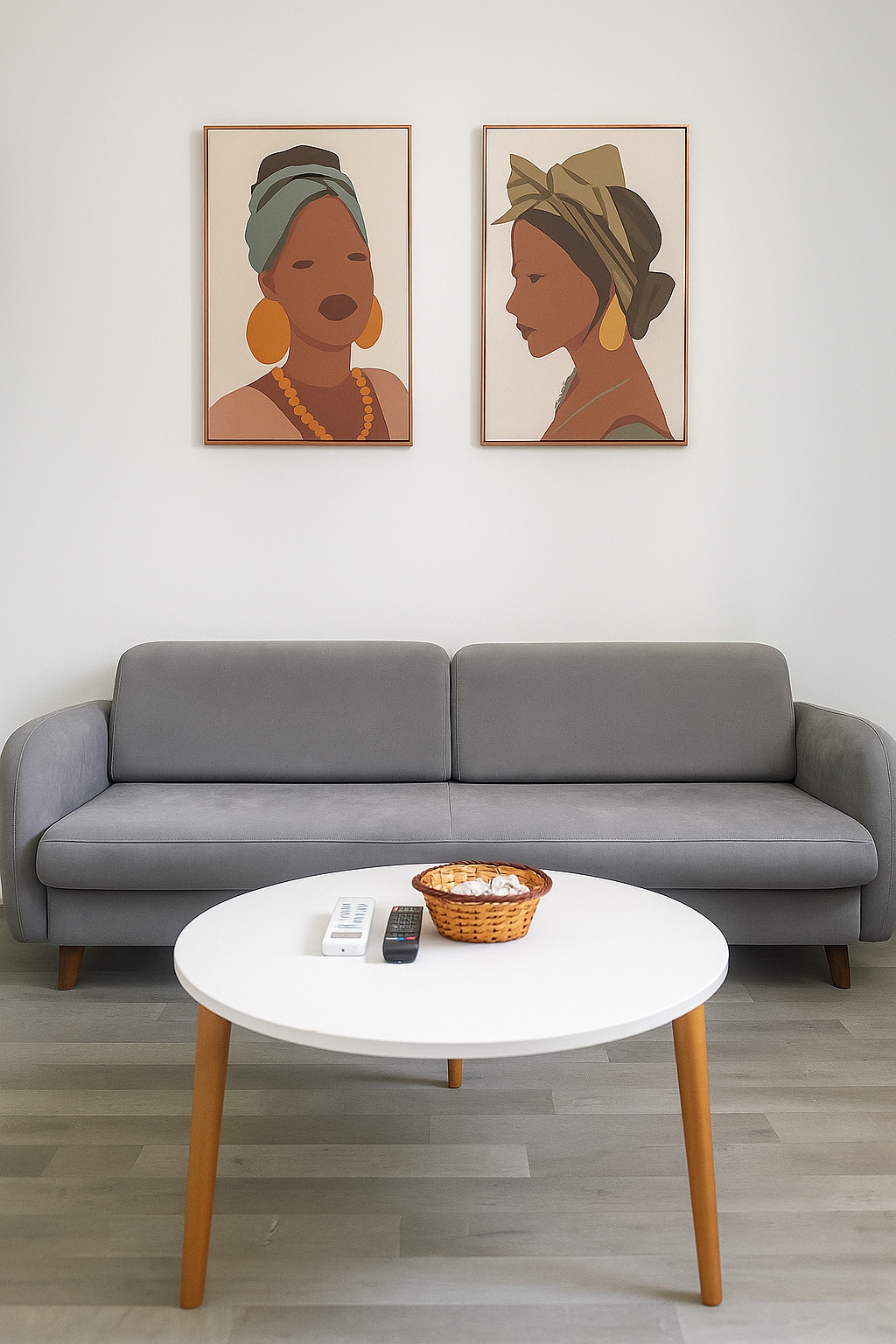 Appartement de 68 M2. 2 chambres de grande qualité, chambre et salon. Fibre optique Business WIFI 500 MBPS/50 Télévision connectée youtube et Netflix Fenêtres à double vitrage insonorisé et isolation thermique Grand balcon (fumeurs bienvenus)Chambre avec climatisation et lit queen Machine à laver. Un canapé-lit dans le salon. 1 lit queen size, un canapé-lit Nous offrons un nettoyage professionnel de notre priorité absolue. Supermarchés, Restaurants, Barbier, Boulangerie et Salle de sport à 2 minutes à pied. Café,thé,huile,sucre et épices.