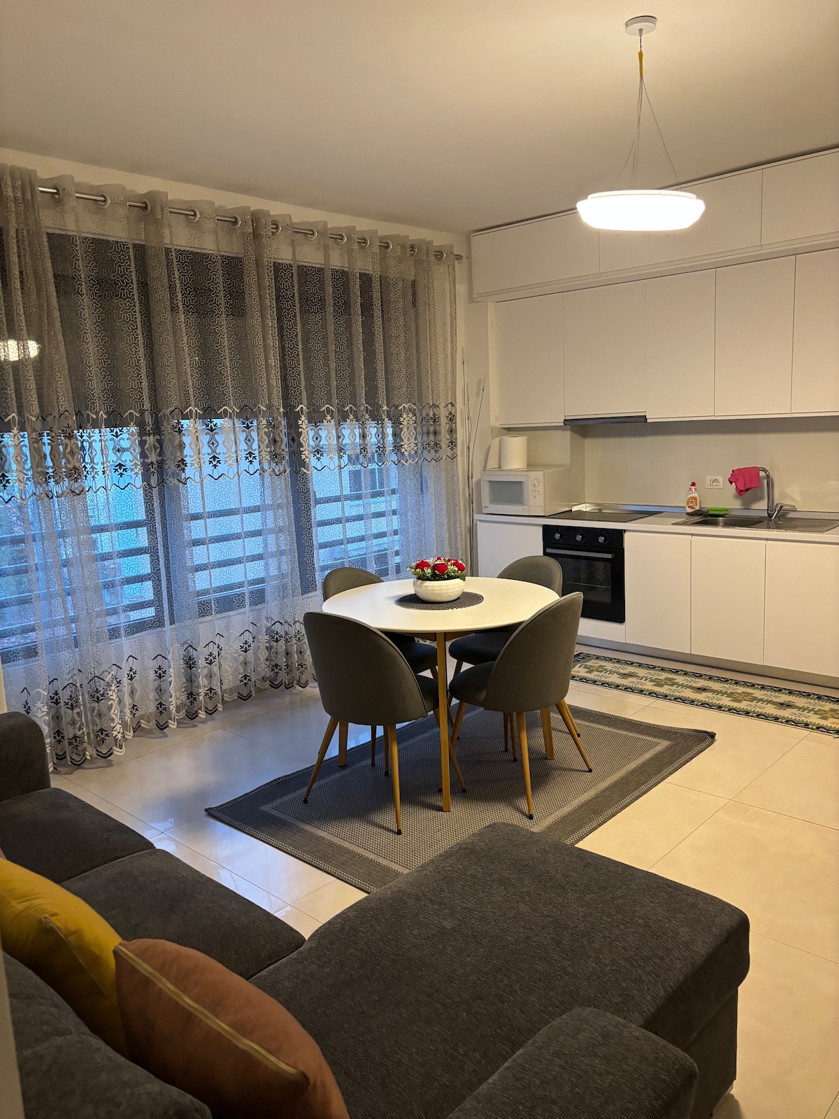 Situé au cœur de Tirana, cet appartement allie parfaitement confort et commodité. Il comprend un salon animé, une chambre confortable avec un lit double, une salle de bains moderne et un balcon privé. La cuisine entièrement équipée et le coin repas offrent un endroit idéal pour en profiter. Avec des boutiques, des cafés et des transports en commun à quelques pas, c'est l'emplacement idéal pour explorer la ville.