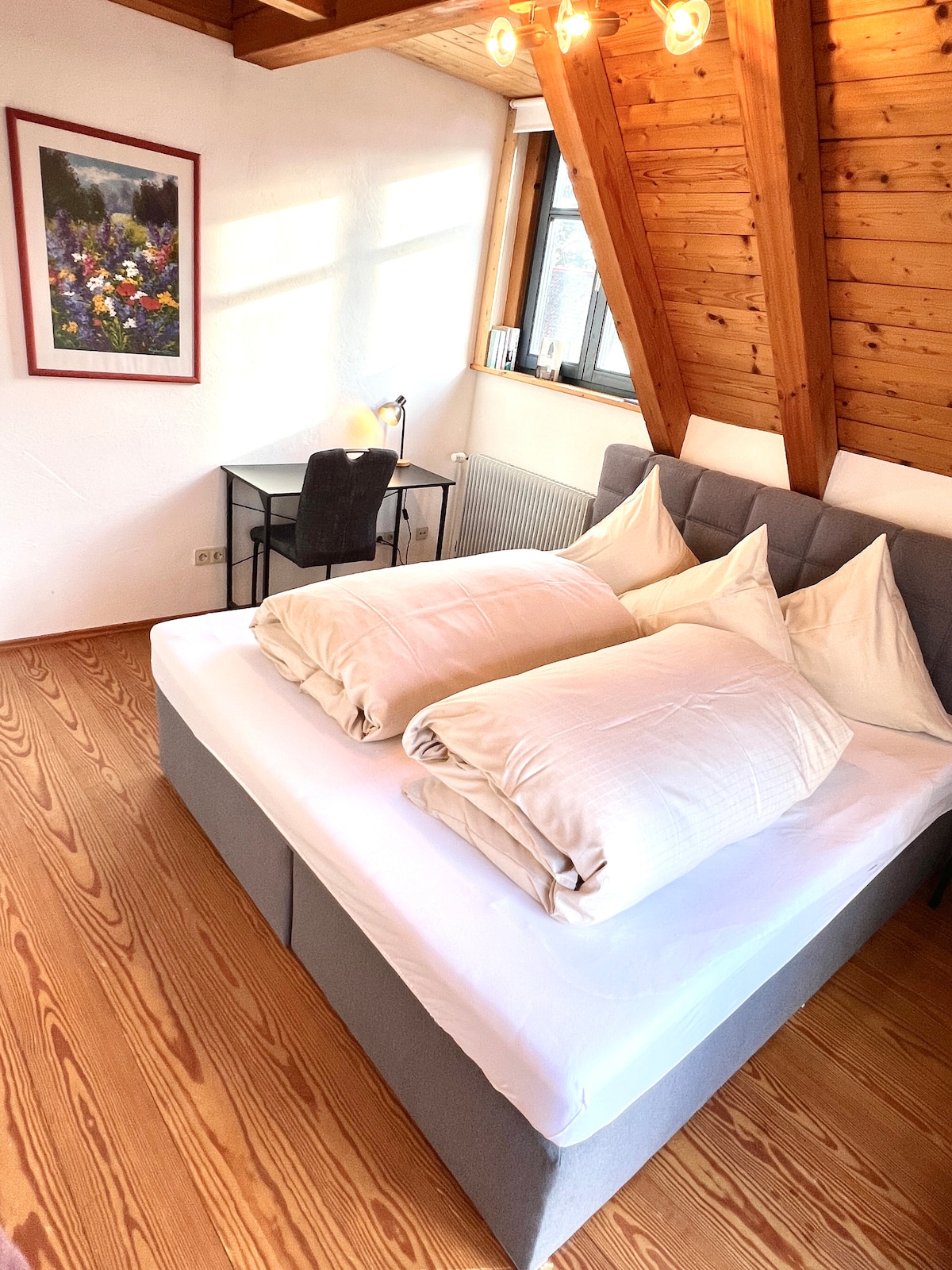 Logement haut de gamme dans un style moderne ! Idéal pour les célibataires ou les couples : profitez de votre tranquillité et profitez d'un moment de départ. - Ski, randonnée, vélo, randonnée, et plus encore - Neckar et Black Forest culmine juste devant la porte - Fitness et bien-être : sauna, haltères, HulaHoop, 2 VTT - Cuisine entièrement équipée avec toutes les garnitures - Superbe balcon ensoleillé sud-ouest - Coin salon (froid ou télétravail) - Chauffage au sol avec parquet confortable en bois de chêne - Machine à café Nes - eCharging Wallbox