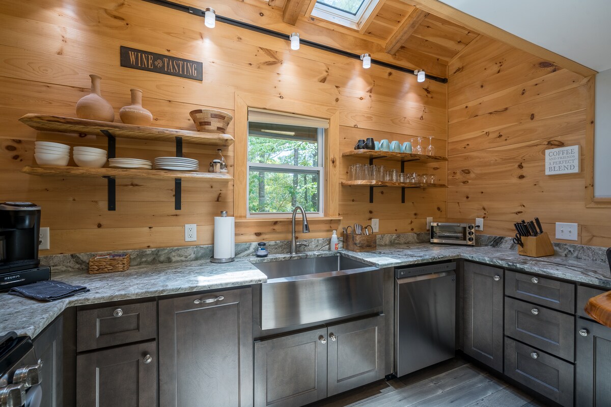 Détendez-vous dans cette retraite paisible et romantique, parfaite pour un couple ou une petite famille. L'élégante chambre dispose d'un lit king size et d'une télévision, tandis que les lits superposés pour adultes offrent un espace confortable pour la lecture ou un invité supplémentaire. Profitez d'une douche luxueuse en carrelage, d'une cuisine complète avec les principaux appareils électroménagers et d'une pièce principale avec un mur de fenêtres. Détendez-vous sur la terrasse privée et profitez d'une vue imprenable sur les montagnes. Une escapade sereine au cœur de la nature.