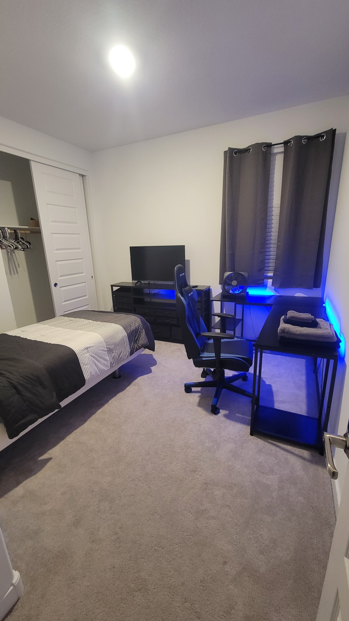Oubliez vos soucis dans ce logement spacieux et serein. Entrée privée avec chambre privée. Salon avec télévision et lit gigogne Queen Size. Kitchenette comprenant une cafetière, un micro-ondes et un mini-réfrigérateur. Près du stade StateFarm et du quartier de divertissement de Westgate. À quelques minutes en voiture de plusieurs complexes d'entraînement de printemps. Articles pour bébé répertoriés disponibles sur demande.
