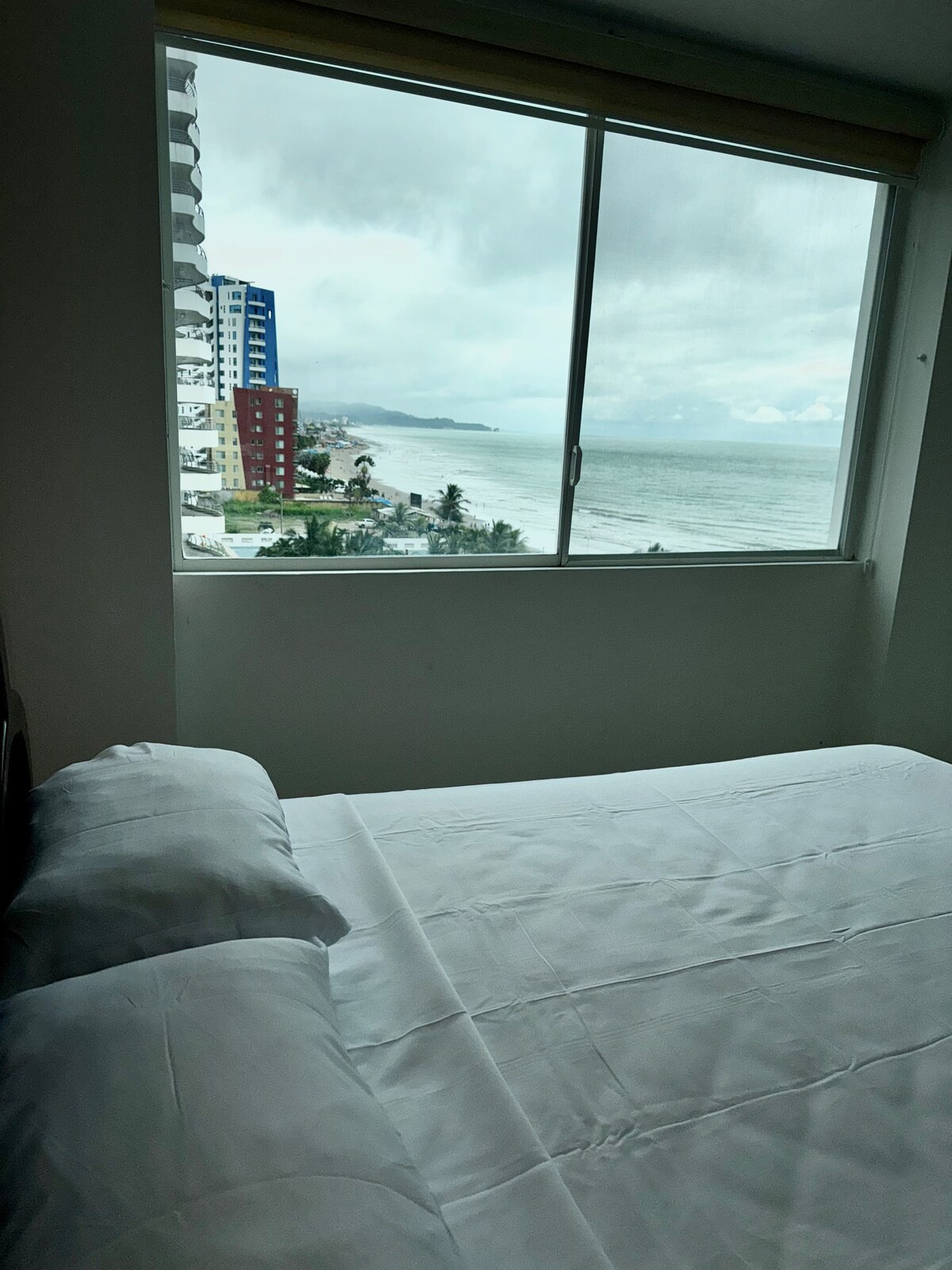 Profitez de vacances en famille ou entre amis à Tonsupa, à 5 heures de Quito. Vous y trouverez les tours de Diamond Beach, où vous pourrez profiter de l'hébergement le plus confortable. Nous proposons un appartement spacieux et luxueux au 12e étage avec vue sur la mer, 3 chambres avec air conditionné, 2 salles de bains. Télévision intelligente avec Directv et internet haut débit , équipé de meubles confortables et d'appareils électroménagers nécessaires pour un excellent séjour. Sécurité 24 h/24.
