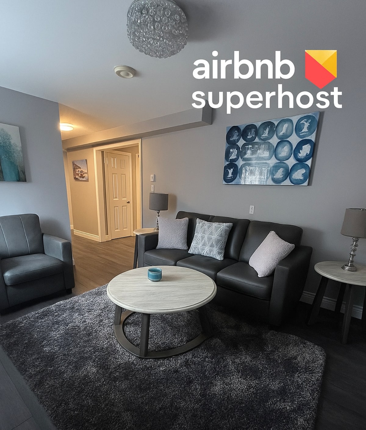Bel appartement d'une chambre au sous-sol. 2 petits enfants vivent au-dessus et des chiens, gardez à l'esprit lors de la réservation que cela peut être bruyant parfois :) 1x lit double 1 canapé en cuir 1 chaise en cuir 1 lit bébé simple Chargeur E/V pour véhicules électriques 🚗 Arrivée à 18 h À 20 minutes des deux hôpitaux et à environ 20 minutes de l'aéroport. Veuillez consulter nos conditions d'annulation strictes avant de réserver. Les réservations ne sont pas remboursables et non transférables. Pas DE FRUITS DE MER dans le logement en raison d'allergies. Numéro d'enregistrement provincial 5468