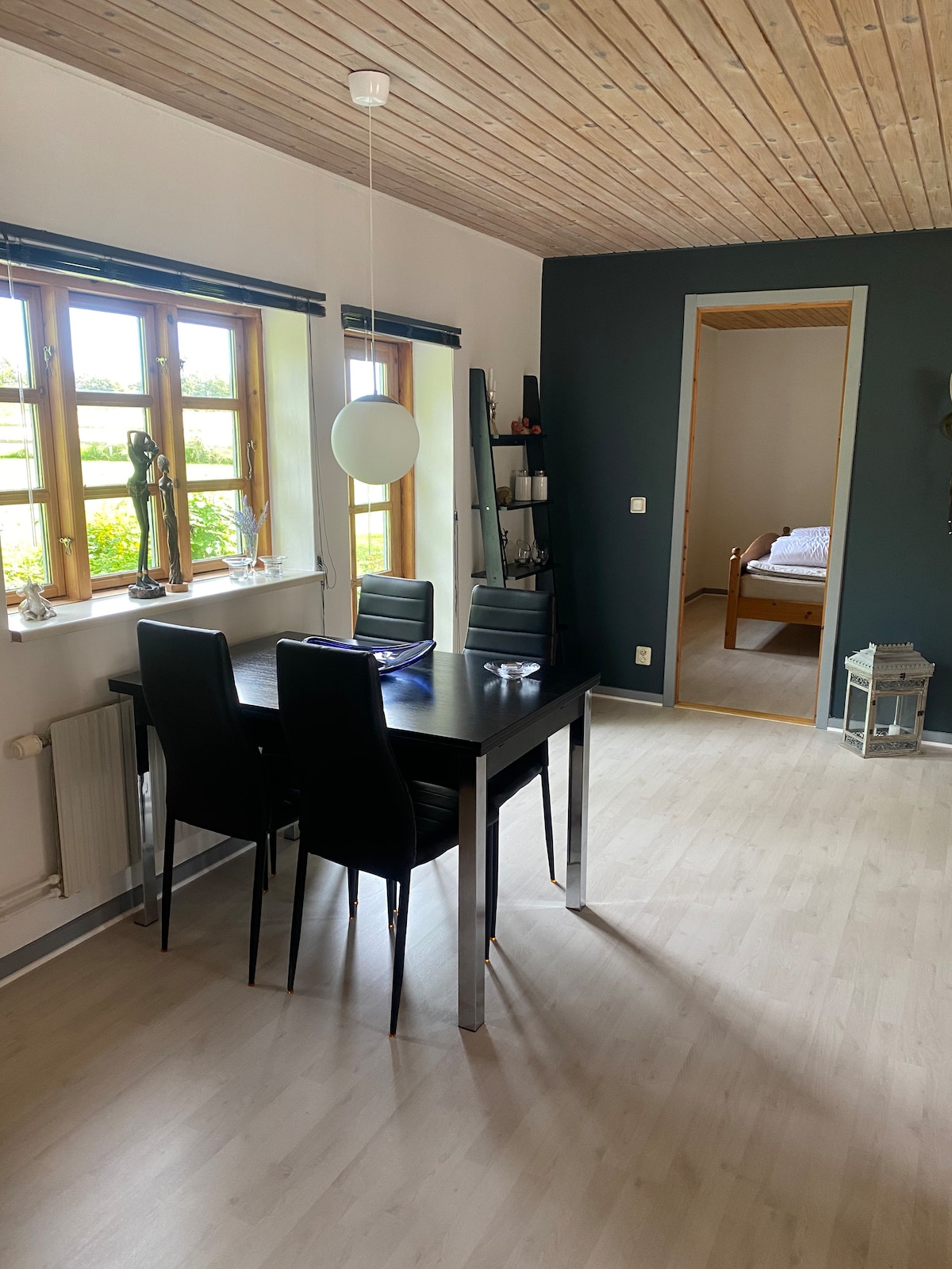 Profitez du confort et de la tranquillité dans un appartement lumineux et agréable d'environ 50 m2 sous le plafond d'une grange aménagée. 1 sur un total de 2 appartements. Construit en 2021. 2 chambres, salon avec canapé-lit, cuisine complète et salle de bain privée. Accès à la piscine partagée. Idyllique à la campagne, mais à seulement 2,5 km de bons magasins, ainsi qu'à environ 10 minutes en voiture d'une fantastique plage de sable adaptée aux enfants. Chiens, chats et chevaux. Le propriétaire vit sur le terrain, mais pour la deuxième longue. Forfait Fibernet et TV. NOUVEAU 2025 : Salle de jeux avec baby-foot, tennis de table et console de jeux rétro.