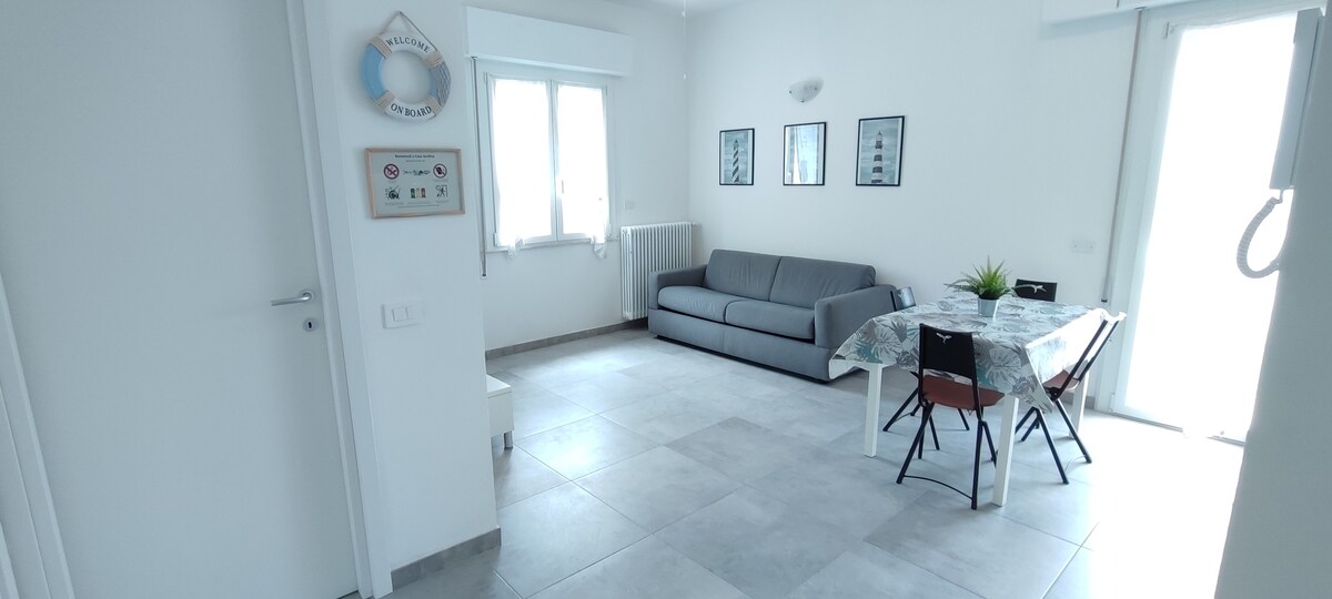 Passez des vacances inoubliables avec votre famille dans notre grand appartement de deux pièces, composé de : cuisine équipée, salon, table et télévision ; chambre spacieuse avec lit double, lit superposé et télévision ;antibagno avec lave-linge et porche avec table et chaises où vous pourrez déjeuner et dîner lors des chaudes journées d’été.L’appartement vient d’être rénové, il est équipé de la climatisation et du chauffage au sol et se trouve au rez-de-chaussée.Il est situé à 50 mètres de la mer et du nouveau front de mer.