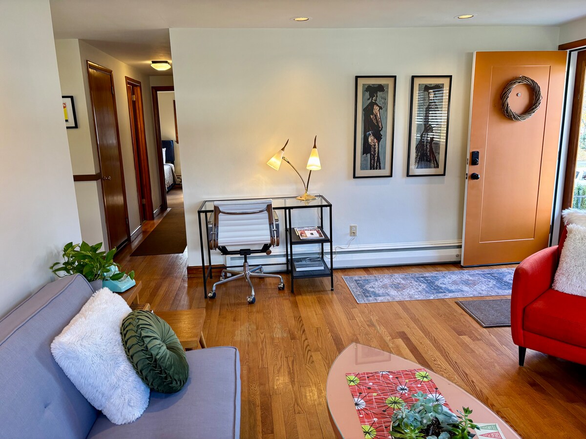 Discover your Guest favorite, pristine retreat in downtown Torrington! This professionally cleaned 2-bedroom, 1-bath first-floor apartment comfortably fits 4 guests. Features a full kitchen, dedicated workspace, and keyless entry. Enjoy a cozy electric fireplace and walk to the historic Warner Theatre. Perfect for professionals or a quiet getaway, with dedicated off-street parking included. Your clean and comfortable home base for exploring the area. Just 30 minutes from multiple Ski Mountains!