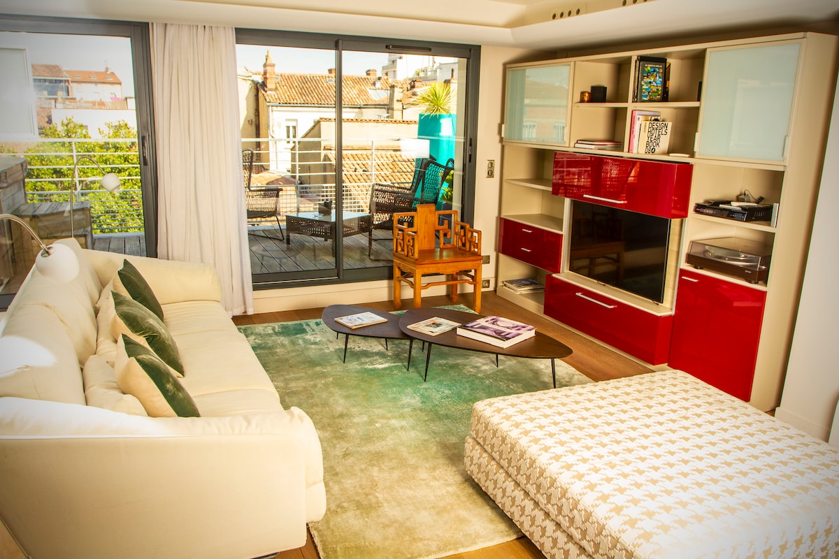 Au cœur du prestigieux Hôtel particulier de Bonnefoy, l'un des plus beaux hôtels particuliers de Toulouse, datant du XVIème siècle et classé monument historique, cet appartement climatisé se compose d’un séjour typique et chaleureux, et d’une cuisine américaine toute équipée à l’étage, d’une grande chambre avec lit double et d’une salle de bain en dessous. Parquet, briquettes apparentes, charme de l’ancien et décoration contemporaine !