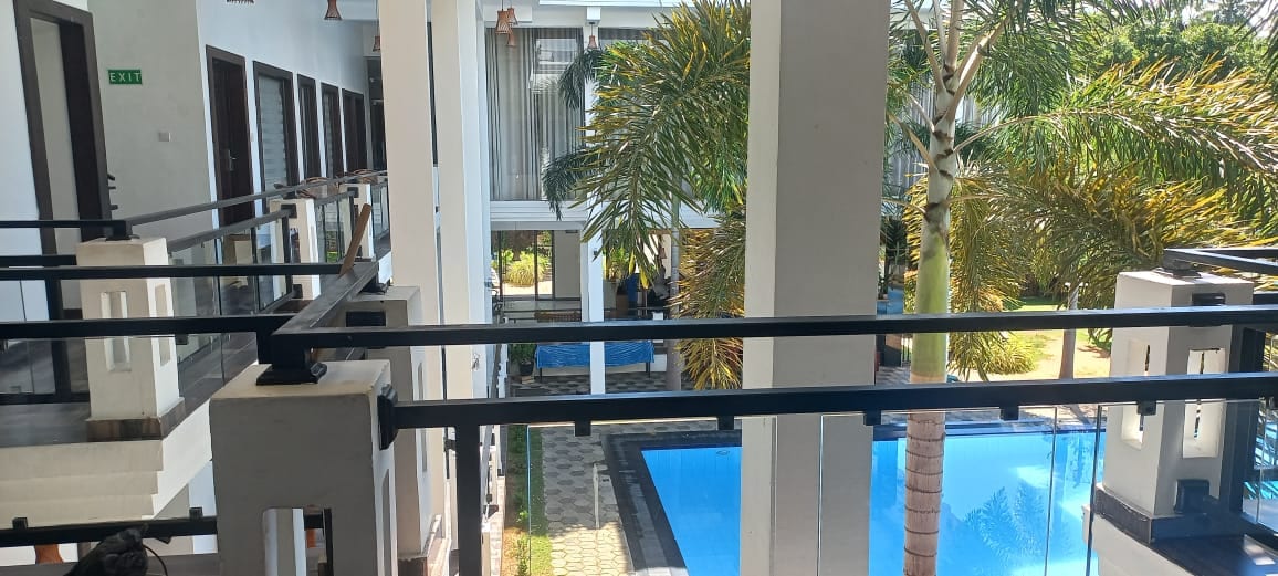 Nous avons 2 chambres doubles avec 2 salles de bains attenantes, 1 cuisine, 1 espace de vie. Et s'il vous plaît noter que la piscine n'est pas sur place C'était à 55 m de la propriété et c'est devant la plage. Les climatiseurs des deux chambres sont inclus dans le prix, mais pour l'utilisation de la climatisation du hall, vous devez payer des frais supplémentaires de 4000LKR par jour Merci !