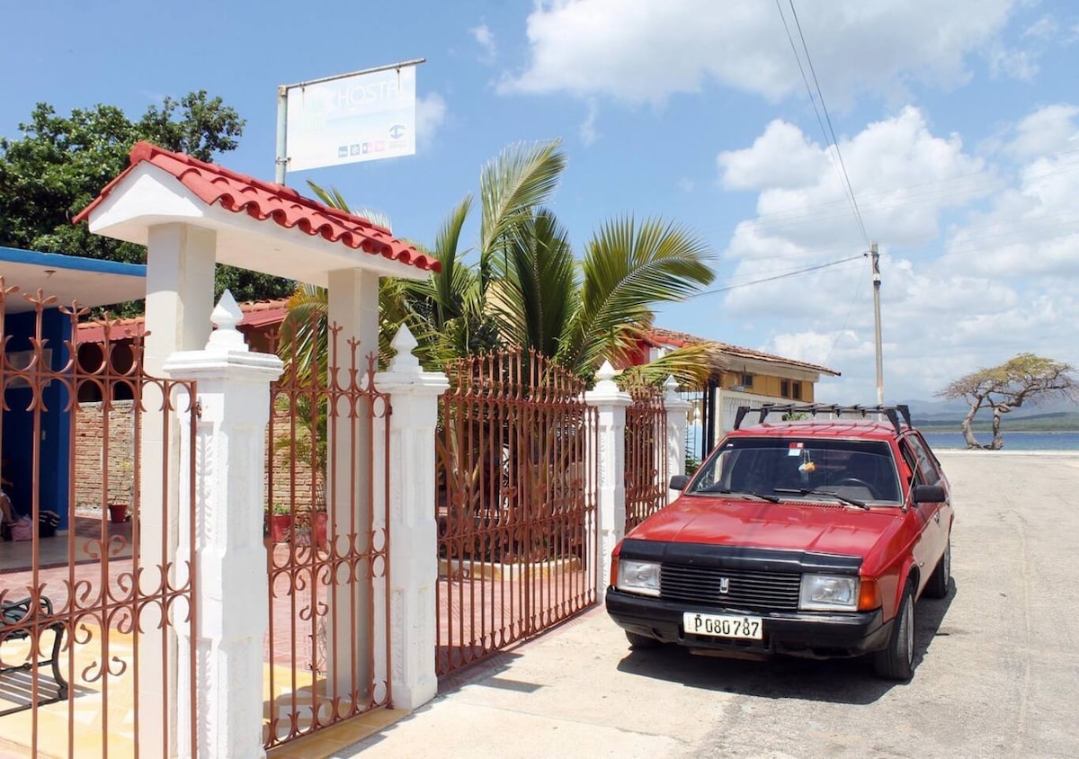 Vous pouvez payer en espèces un prix moins cher, chaque chambre à 23 euros/USD par nuit, contact + cinq trois neuf deux huit cinq un. Presque face à la mer, depuis la porsche, vous pouvez voir la plage et la rue principale qui mène à Trinidad, ce qui permet un accès rapide à Trinidad et à la plage d'Ancon. La maison est louée en entier pour les clients,dispose de 2 chambres climatisées, chacune avec sa salle de bains privée, dispose également d'un portail, d'un salon avec télévision.