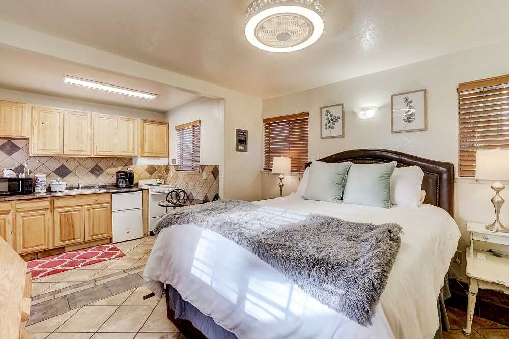 Niché au cœur de Stateline, dans le Nevada, le Cottage 2 at Doc 's Cottages offre le mélange parfait de confort, de charme et de commodité, tous à quelques pas des rives du lac Tahoe et de l'excitation des casinos et restaurants de South Shore. Cet endroit spécial est proche de tout, ce qui facilite la planification de votre visite. Ce studio confortable dispose d'un lit queen size confortable, d'une cuisine complète avec cuisinière, four, four à micro-ondes et semi-réfrigérateur, ainsi que d'un coin repas.