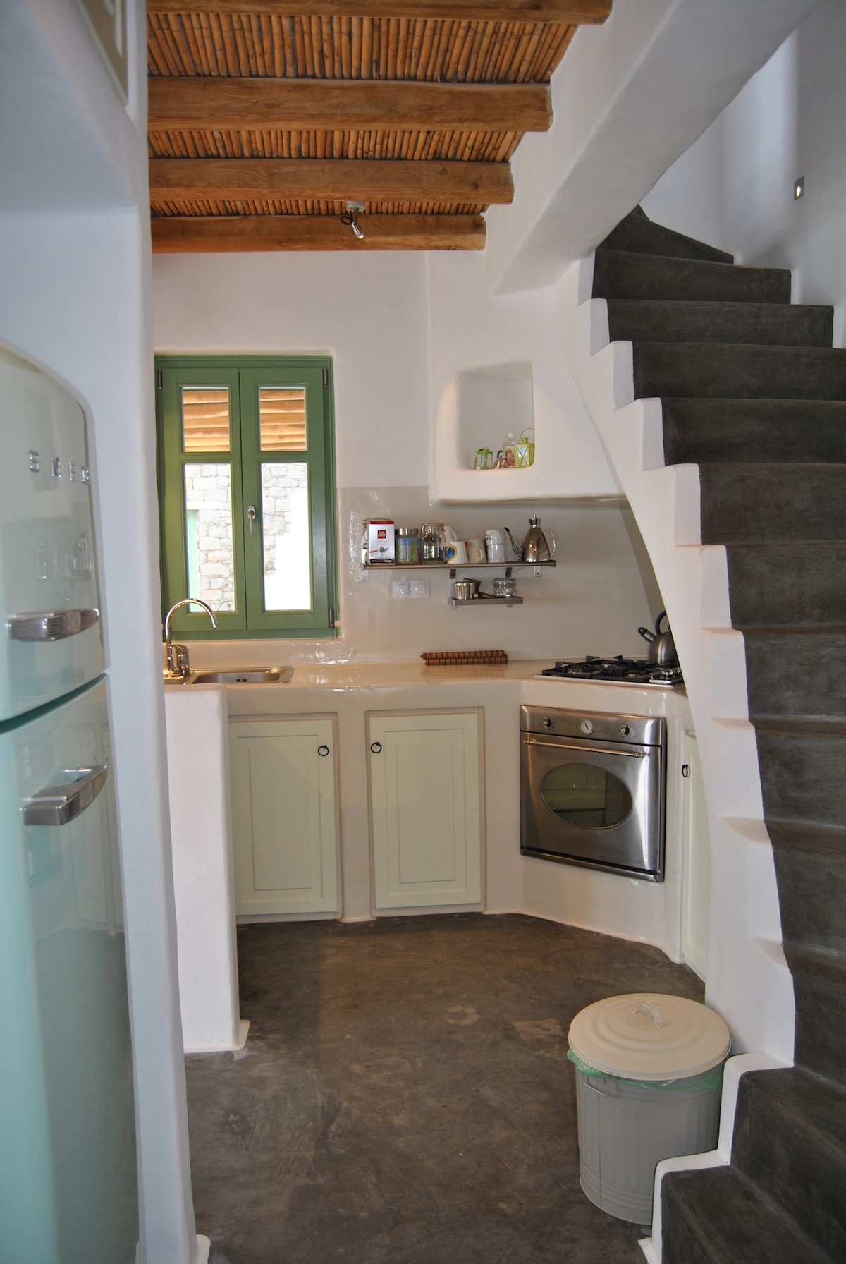 Bienvenue en Grèce, dans ma maison ! C’est une maison familiale, typiquement cycladique. Elle a appartenu à mes grand-parents et j’ai essayé d’en garder l’esprit, tout en l’adaptant aux exigences de la vie d’aujourd’hui . Une maison de village, accessible par un charmant escalier, elle est totalement protégée des bruits de la route. Exposée plein sud, (très important, car à l’abri du meltemi, vent du nord qui souffle en rafale tout l’été) , elle surplombe Klima, un pittoresque village de pêcheurs ( à 20mn à pied et 3mn en voiture) et toute la baie intérieure. Environnement très calme de grecs qui vivent là toute l’année et qu’il faut respecter. Des terrasses où prendre son petit déjeuner, et profiter des couchers du soleil incendiaires. A l’intérieur une première grande pièce commune, cuisine, salon avec un petit canapé, une salle de douche et WC, une belle chambre avec son « doulapi » (placard ) inclus dans le mur. Les plafonds sont restés traditionnels, poutres et kalami récemment blanchis à la chaux et dont la vertu est de protéger du bruit et de la chaleur, mais ni des moustiques, araignées et insectes qui peuvent nous rendre visite en dépit des soins constants apportés à la propreté de la maison ! Malgré tout, même si nous sommes tout près de la mer, nous sommes aussi dans la campagne grecque, celle des oliviers, des cyprès, et d’une flore typiquement cycladique; du chant des cigales et des grillons, la nuit tombée. Avec au loin, les clochettes des moutons et le braiment d’un âne. Ce qui rendra votre séjour dépaysant et je l'espère unique !