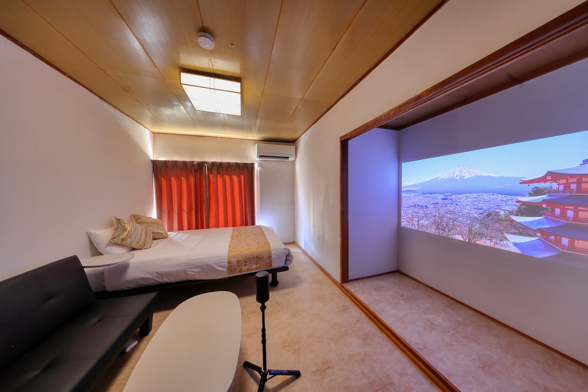 Une maison japonaise traditionnelle dans la région du lac Kawaguchi, au pied du mont Fuji. La salle est conçue pour évoquer le début de l'ère Meiji au Japon. C'est un endroit calme entouré de nature, ce qui en fait un lieu idéal pour les travailleurs à distance. Il est également bien équipé pour que vous soyez productif lors d'un voyage d'affaires ou d'un voyage. Pendant la journée, vous pouvez ressentir le son agréable du vent et des oiseaux qui chantent. Il est équipé de plusieurs lumières, afin que vous puissiez profiter d'un espace confortable et relaxant la nuit. Vous pouvez voir le mont Fuji si vous marchez 30 secondes depuis la chambre. L'espace du « tatami », l'une des principales cultures du Japon, vous attend. Idéal pour les nomades numériques, les couples et les voyages en groupe entre amis.