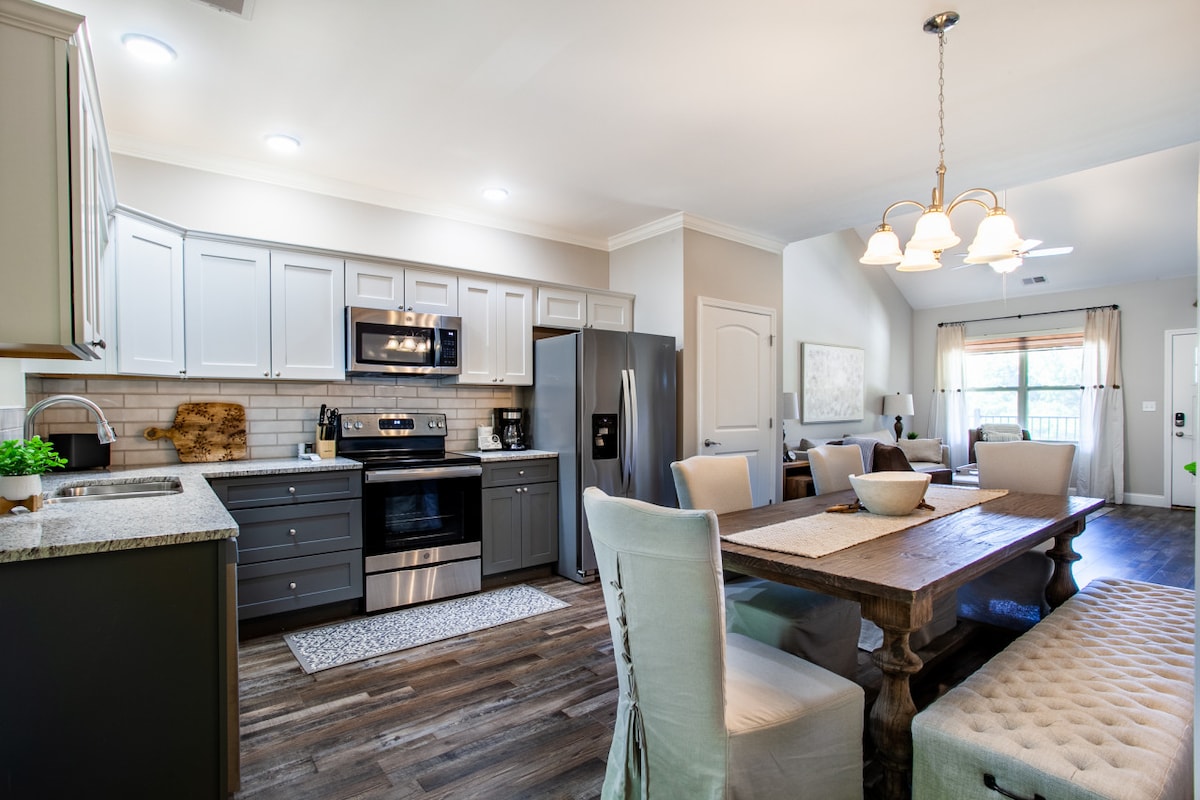 Les montagnes vous appellent au Cobblestone Manor, un chalet magnifiquement entretenu niché dans le côté calme des montagnes Great Smoky Mountains - Townsend, Tennessee. À seulement 10 minutes du parc national et en plein cœur de la randonnée, du VTT, du rafting, de la descente en bouée et bien plus encore ! Les deux terrasses couvertes sont l'endroit idéal pour admirer le lever du soleil sur les montagnes. Nous ne sommes pas aménagés pour les fêtes ou la vie nocturne dans notre cabane ou notre quartier, mais le compromis est la paix et la tranquillité !