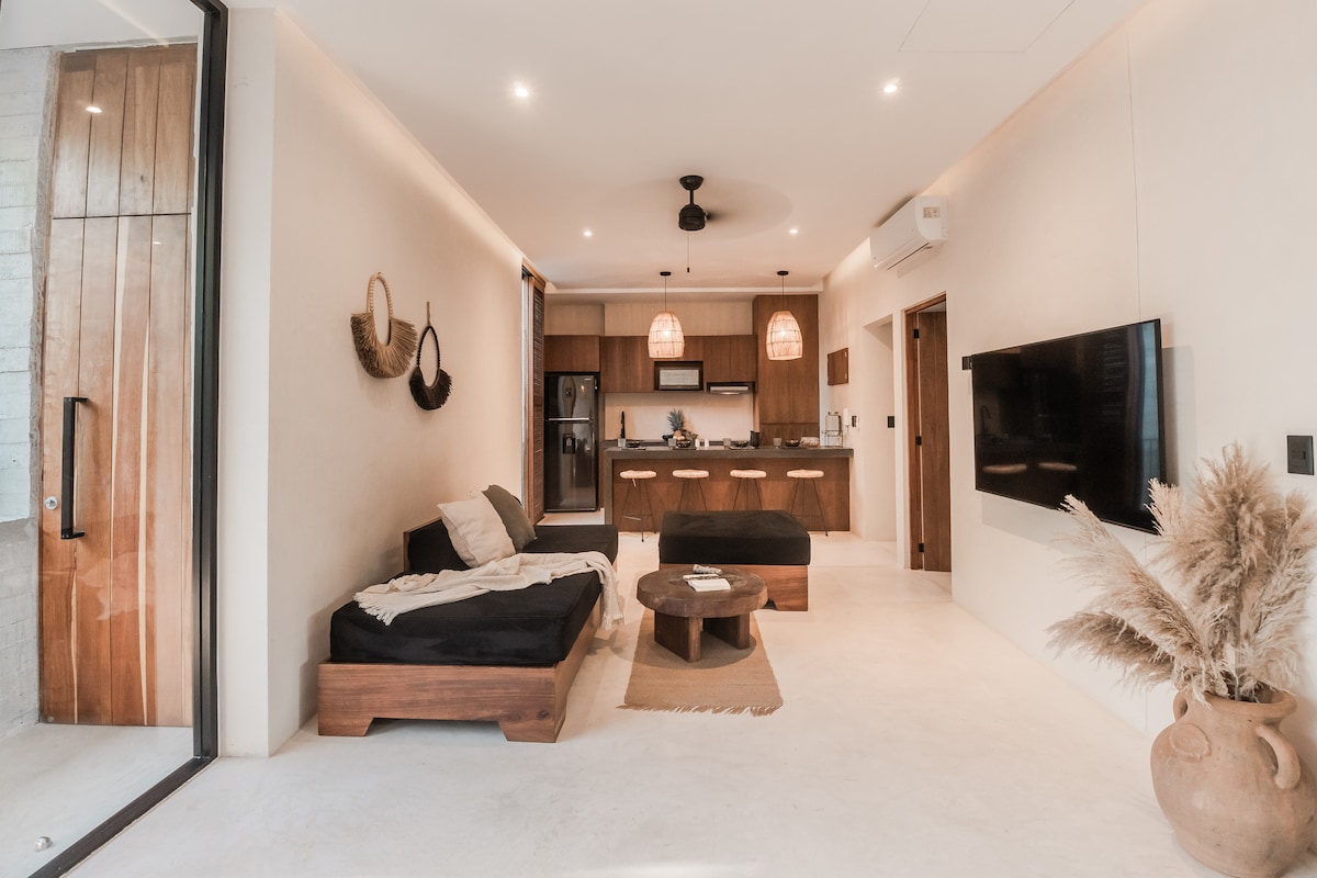 Welcome to your MayanKey hideaway in Tulum — a stylish 2-bedroom apartment designed for comfort, ease, and a relaxed connection to its natural surroundings. The open-concept living space, fully equipped kitchen, and private balcony create the perfect setting for slow mornings and easy evenings at home. Both bedrooms feature queen-size beds and ensuite bathrooms, making this an ideal choice for couples, friends, or small families seeking a calm and well-appointed stay.