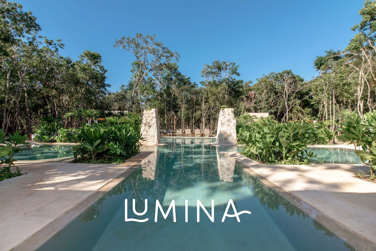Ce Penthouse Lumina est parfait pour une famille ou un grand groupe d'amis voyageant ensemble. C'est un appartement entièrement équipé de 2 chambres avec son propre toit privé et sa piscine, d'une cuisine entièrement équipée, de 2 salles de bain entièrement équipées et d'un balcon. Il a également accès à toutes les commodités de LOSANTOS Tulum, y compris la piscine de type cénote (unique et plus grande à Tulum), la salle de sport et le court de tennis padel.