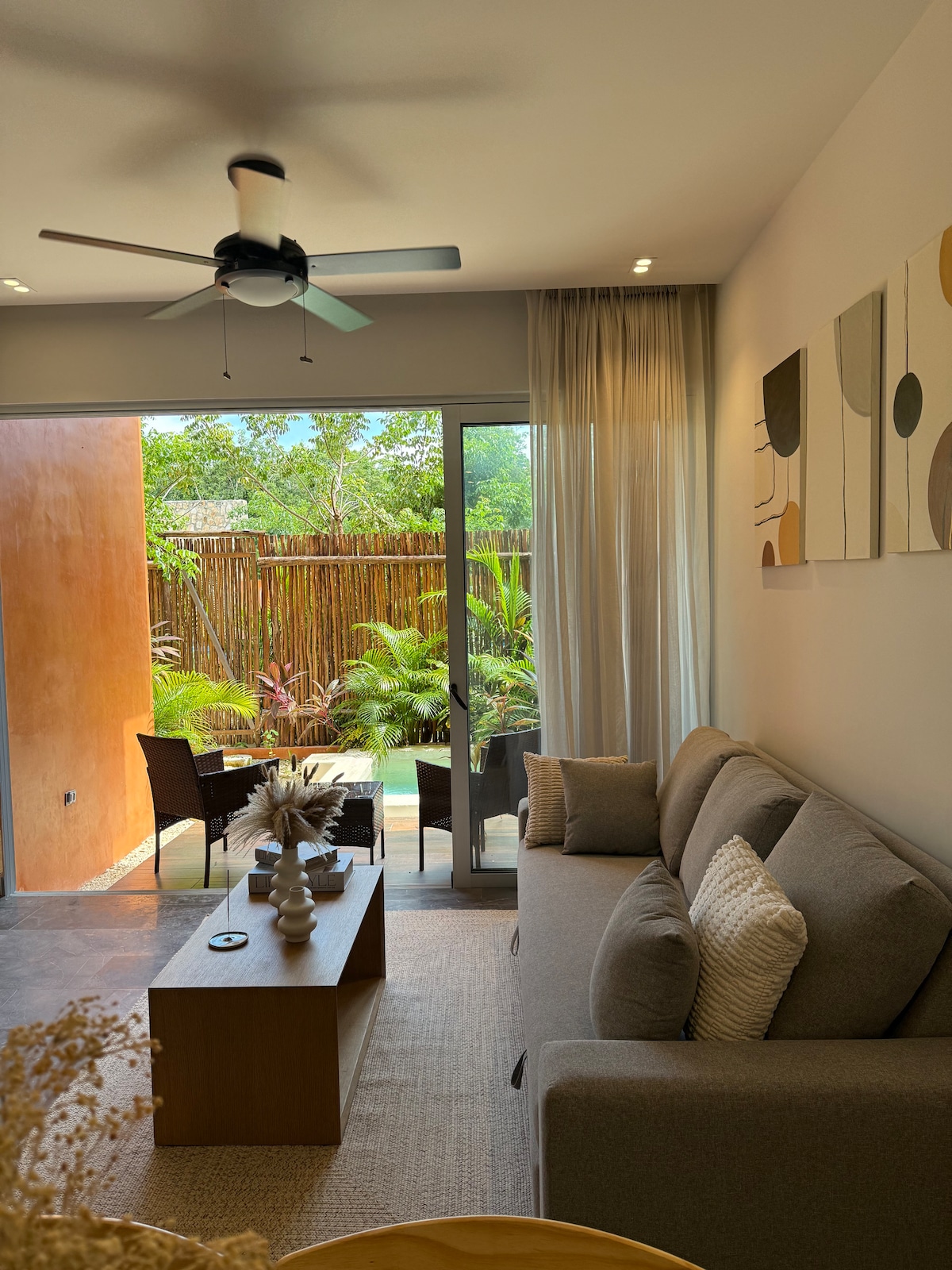 Profitez de cet élégant loft dans la zone hôtelière de Tulum. Vivez dans un complexe résidentiel avec piscines, jacuzzis, rooftop avec piscine à débordement, salle de sport et gastrobar. Transport inclus vers notre club de plage. Entièrement équipé pour un séjour inoubliable. Internet haut débit, idéal pour les nomades numériques ou pour se détendre en regardant sa série préférée. Des espaces confortables pour travailler ou simplement se détendre. Détendez-vous sur votre terrasse privée en admirant le coucher du soleil. Tulum vous attend !