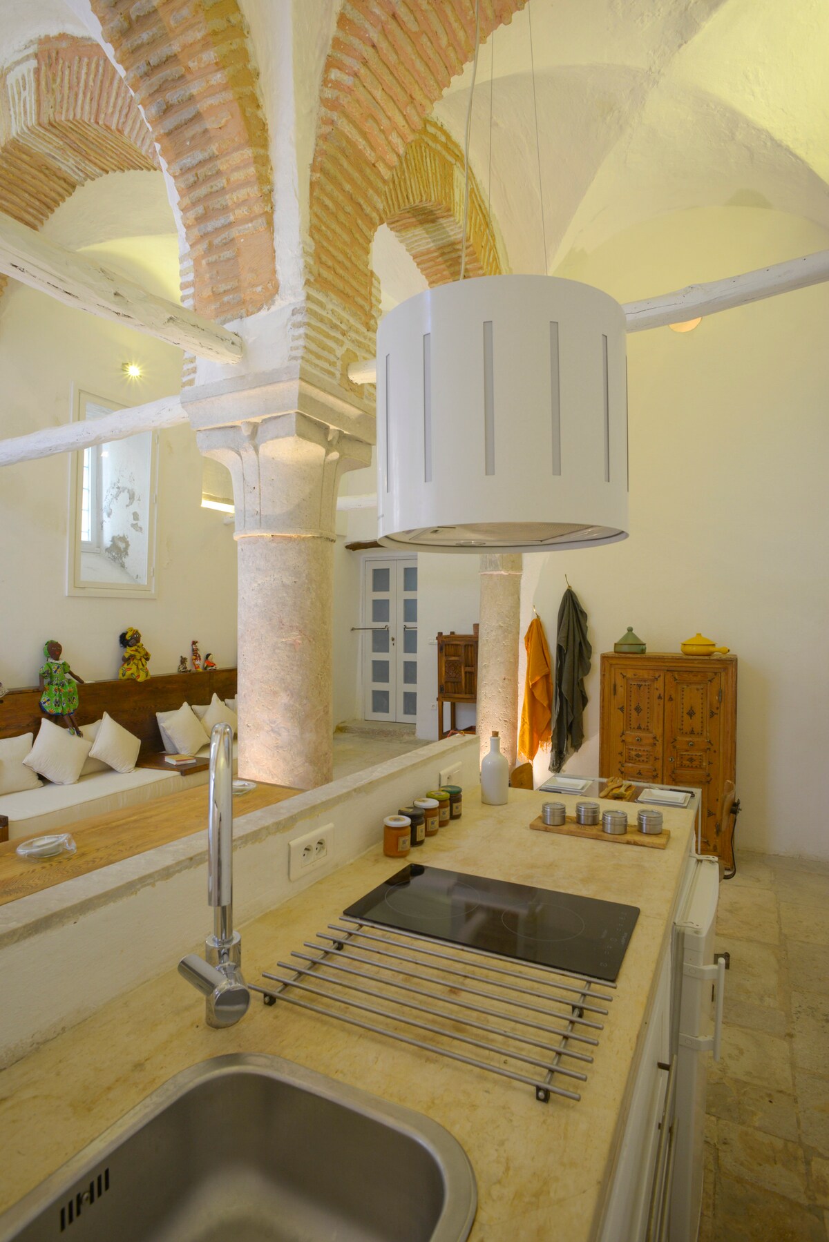 Récemment restauré, Le Makhzen-loft est un appartement aménagé dans les anciennes écuries de notre demeure située au coeur de la médina de Tunis. Il est situé au rez de chaussée de notre maison familiale. Indépendant, spacieux, confortable, il a été aménagé dans un style épuré et dépouillé, où voûtes croisées, arches et colonnes du XIVè siècle lui confèrent un côté majestueux. il est équipé d'un coin cuisine, salon, espace de travail et salle de bain. Il convient aux séjours longues durées.