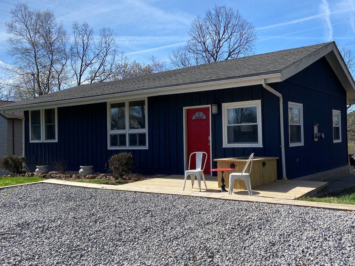 Petite maison nichée à la lisière de la forêt nationale de Shawnee. Une chambre confortable avec placard complet et laveuse et sécheuse empilées. Le lit est de taille complète. Cuisine avec cuisinière, réfrigérateur et micro-ondes. Il n'y a pas de lave-vaisselle. Le séjour dispose d'une télévision connectée. Connectez-vous à votre Netflix, Sling, YouTube TV, etc. Wi-Fi fourni. Pas de câble. Salle de bain complète avec douche. Certains de nos voyageurs ont déclaré que s'asseoir sur le porche pour regarder les magnifiques couchers de soleil chaque soir était un bonus supplémentaire pour séjourner chez nous.