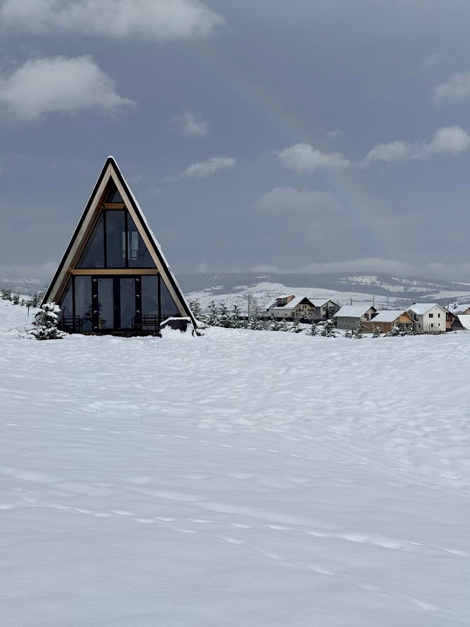 Amont Chalet se compose de deux chalets en A confortables et modernes et d'une maison nordique située sur les collines idylliques du village de Pestera, à quelques minutes du célèbre château de Bran. Il est situé entre les montagnes Piatra Craiului et Bucegi et offre une vue spectaculaire directe sur ces montagnes.