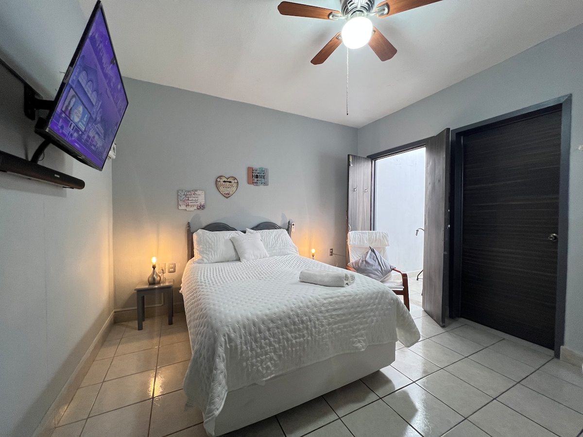 Habitacion privada con baño y A/C en planta baja
