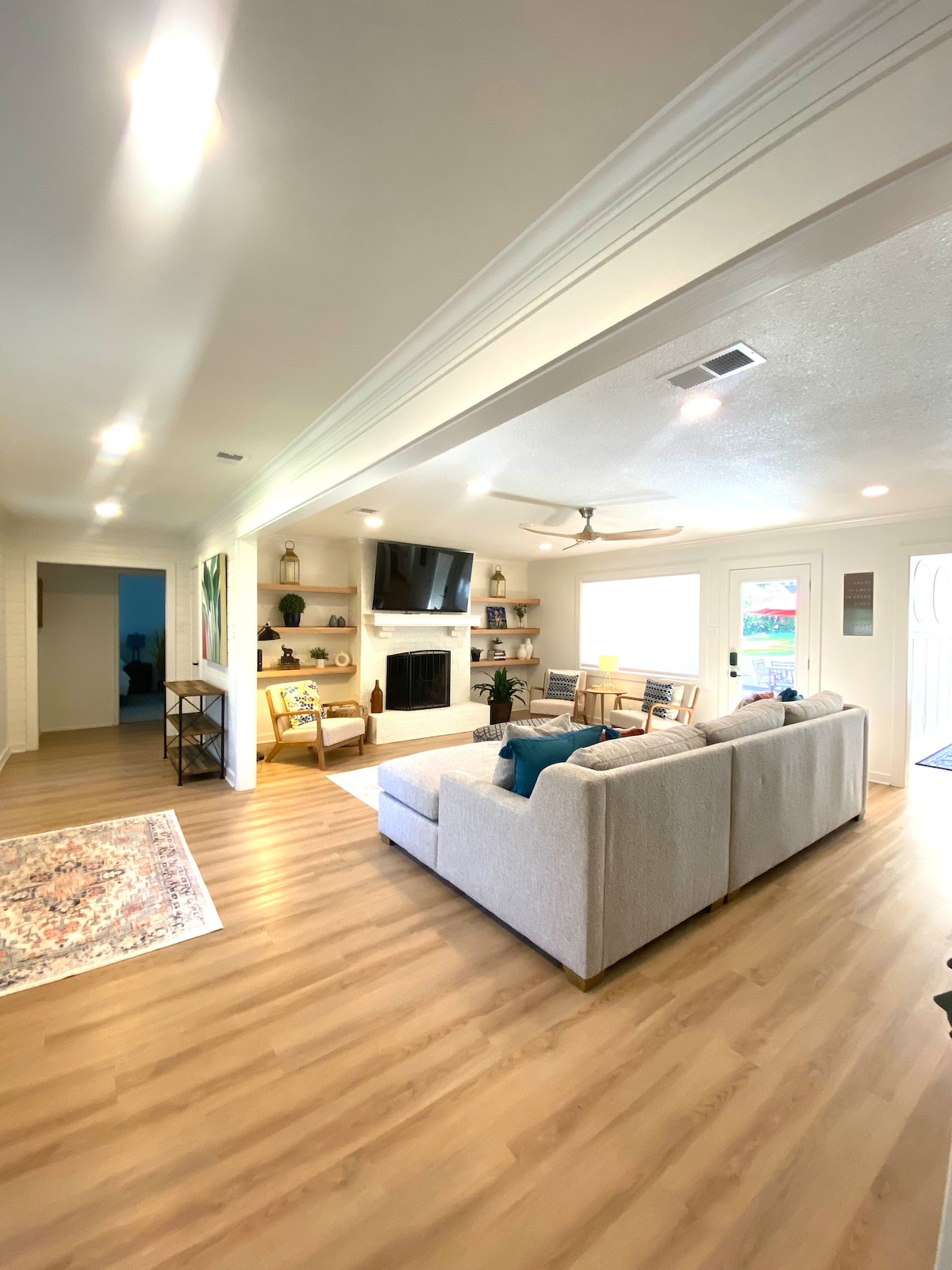 This fully remodeled 2700 sq ft boho-chic home in South Tyler sits in a beautiful, tree-lined, safe neighborhood. It features 4 bedrooms—three with king beds and one with 2 bunkbeds. Designed for relaxation and fun with family and kids in mind, it offers 4 large TVs and an ultra-comfy 11-ft sofa perfect for movie nights. Enjoy pool, ping pong or foosball in one of two game rooms, or unwind in the outdoor living space and fire up the grill.