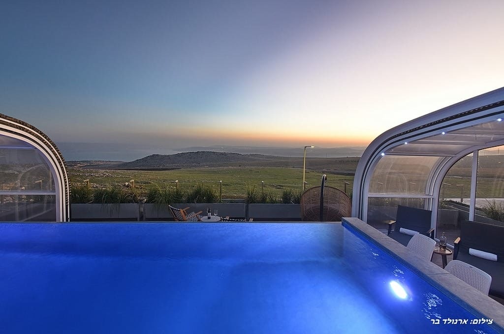 Suite privée galiléenne à 360 ° avec Hermon et Galilée. La suite dispose d'une grande piscine de surf privée qui est utilisée par les voyageurs dans la suite du logement. Comprend un jacuzzi sur un balcon isolé avec vue sur la montagne et Hermon. Le complexe dispose d'une cuisine comprenant un luxueux barbecue au gaz, des parasols et des sièges pour le confort de vos voyageurs.