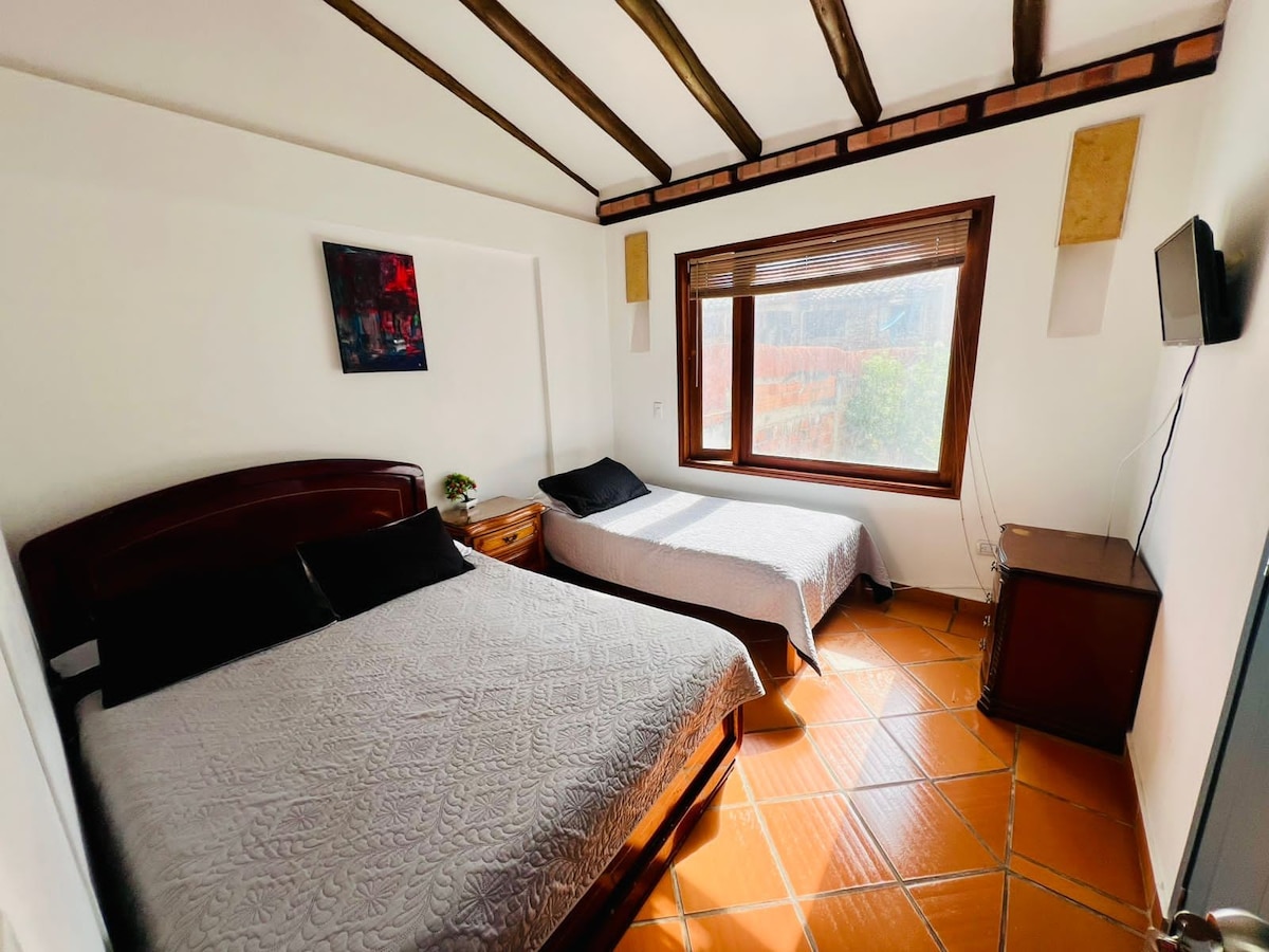 Chalet confortable pour les couples et les familles, très proche du village historique de Villa de Leyva (1 km) et en même temps au milieu d'un paradis champêtre unique. Nos clients peuvent profiter de grands jardins, d'un lac et de beaux sentiers naturels. La cabane dispose de trois merveilleuses chambres, 3 salles de bains, salon-salle à manger, cuisine moderne ouverte sur un porche absolument spectaculaire. Le chalet est loin de la maison principale de ma famille, il a une excellente intimité, et aussi une grande sécurité ! !