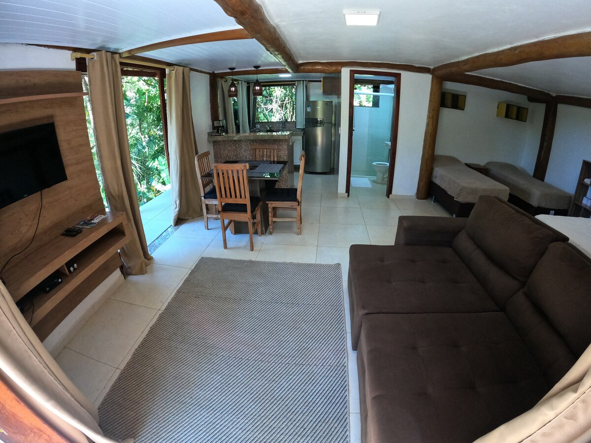 Situé dans un quartier noble, arboré et sécurisé de Paraty, notre chalet vous offre une expérience unique d’intégration avec l’environnement. Idéal pour une escapade en toute tranquillité. À seulement 5 minutes en voiture du centre historique et 25 minutes à pied, notre chalet bénéficie d’un emplacement stratégique. Il permet un accès direct à la route des plages, évitant ainsi les embouteillages du centre-ville en haute saison.