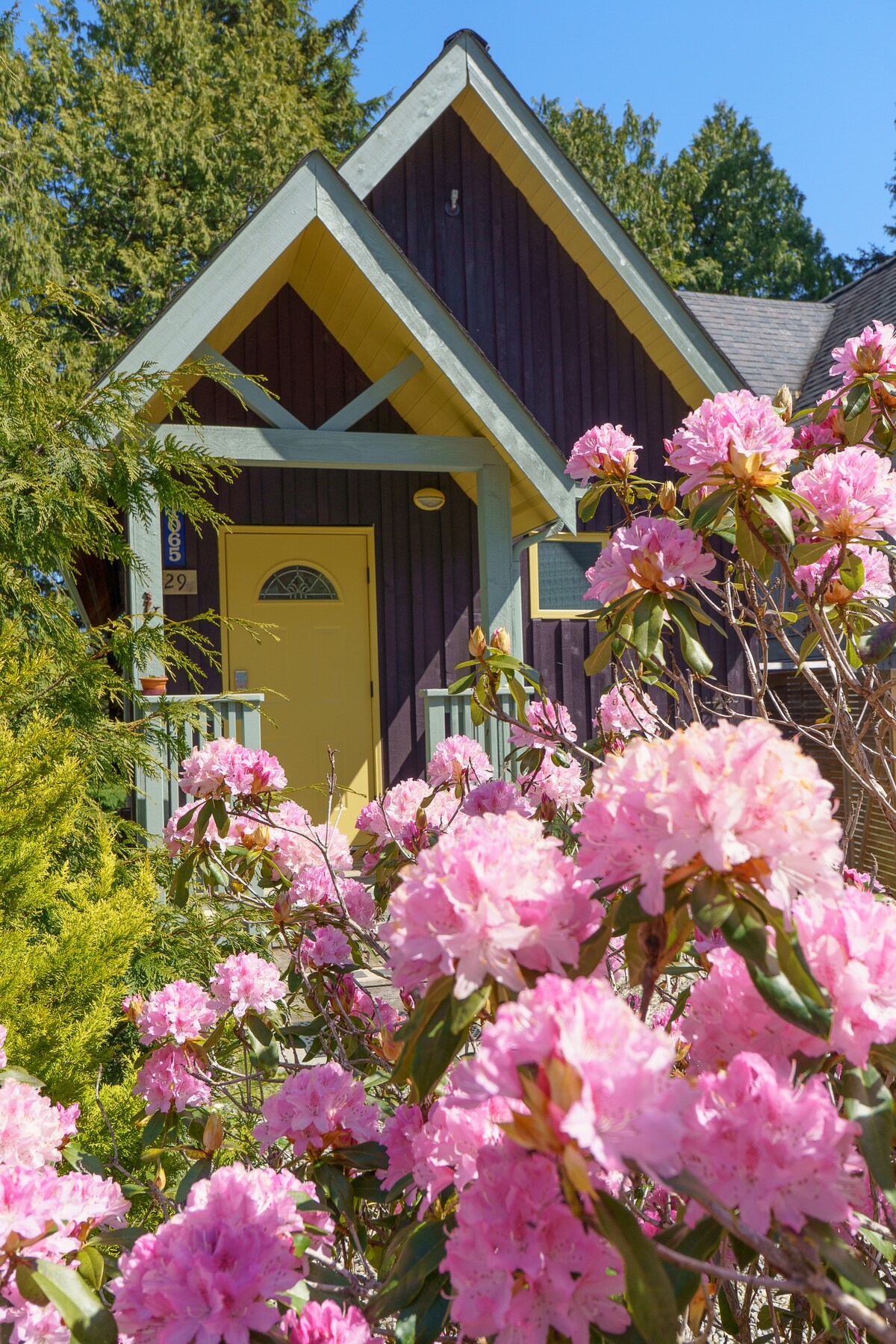 Bienvenue au chalet Lazy Bear ! Cette cabane confortable est nichée parmi de grands arbres, au cœur d'Ucluelet. Détendez-vous sur le porche avant donnant sur votre cour privée entièrement clôturée et votre foyer. Observez les étoiles depuis votre lit à travers les puits de lumière de la chambre du loft (avec des stores de puits de lumière). Détendez-vous dans le séjour tout en admirant l'art mural que l'on trouve dans toute la cabane (art de @lisajoanart). Détendez-vous dans votre jacuzzi privé après une journée sur le Wild Pacific Trail ou à surfer. foggymoonlazybearucluelet