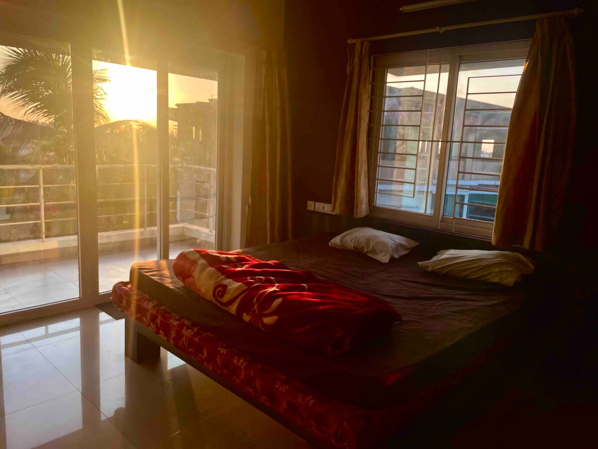 This beautiful holiday home is in Santhekatte, Udupi. Located on the first floor of a bungalow, this 1BHK apartment has 4 beds, attached bath and private attached kitchen with fridge, induction cooktop, non-stick cookware and a uv filter. 6 additional bathrooms on terrace. If your group size is more than 4, message us for details. Swiggy & Zomato also deliver here. Superstores, medical shops & doctors are all at a walking distance Malpe, St.Marys Island, KrishnaTemple are all at 7km.