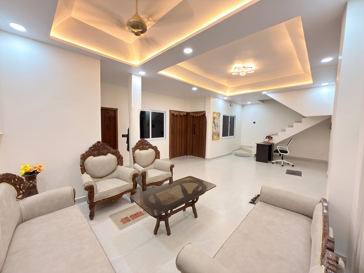 Séjour chez l'habitant de luxe 2BHK à Ujjain 🌟 Emplacement privilégié : à quelques minutes du temple Mahakaleshwar, du temple Harsiddhi et de la rivière Shipra. 🛋️ Élégants intérieurs : le charme traditionnel rencontre le luxe moderne dans des espaces de vie spacieux. 🛏️ Deux chambres luxueuses : lits King-size avec climatisation, Wi-Fi et draps haut de gamme. 🍳 Cuisine entièrement équipée : préparez vos repas avec style. Jardin 🌿 relaxant : parfait pour le thé, la méditation et le détente. Expérience 📍 personnalisée : conseils et recommandations locaux disponibles. 🅿️Voiture