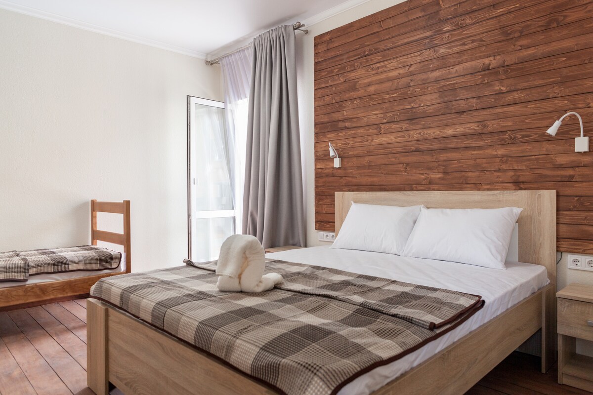 3-х местный номер, общая площадь номера 20 кв.м.Окна номеров выходят на улицу, во внутренний двор.